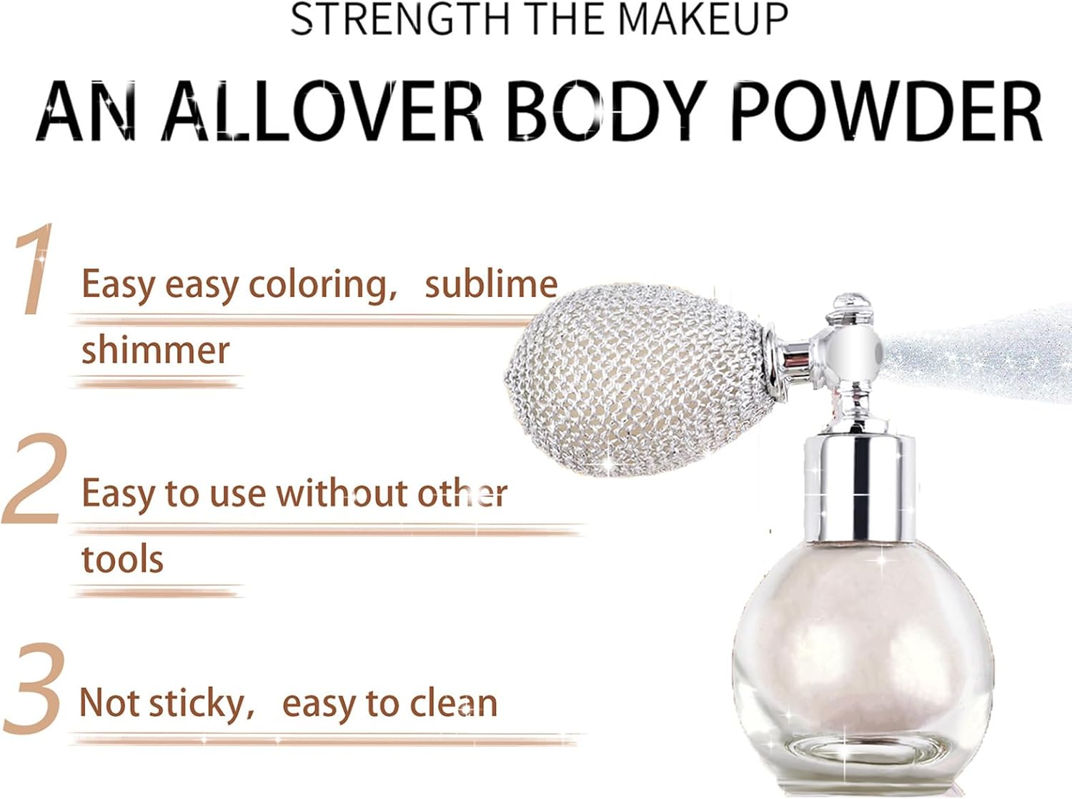 Our body powder spray would be smooth, fine, shiny, not sticky or greasy and fresh at the same time. A body highlighter that’s easy to remove with daily clean steps.