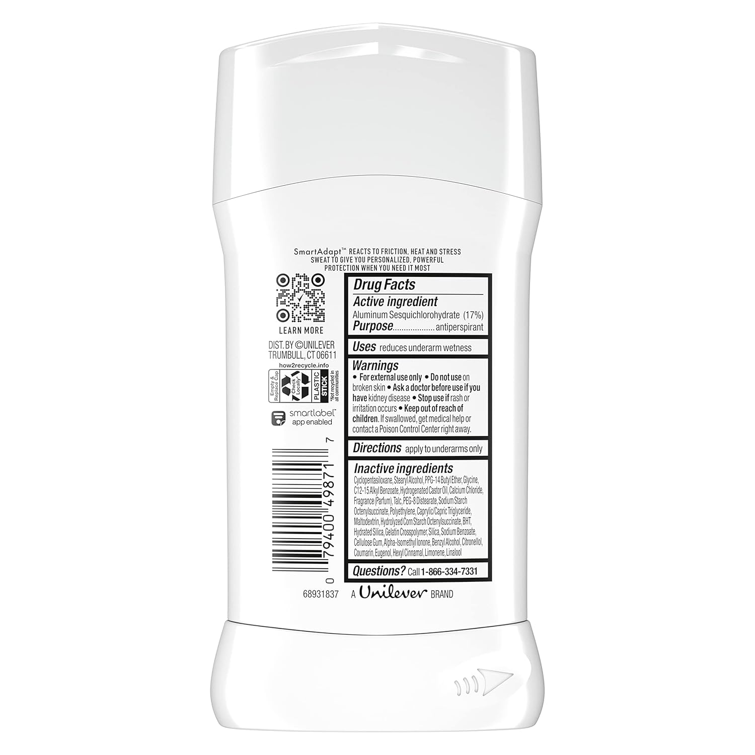 SMARTADAPT TECH: This is the only deodorant with antiperspirant technology SmartAdapt Tech that responds to stress sweat, heat, and movement for unlimited sweat & odor protection (up to 96H).