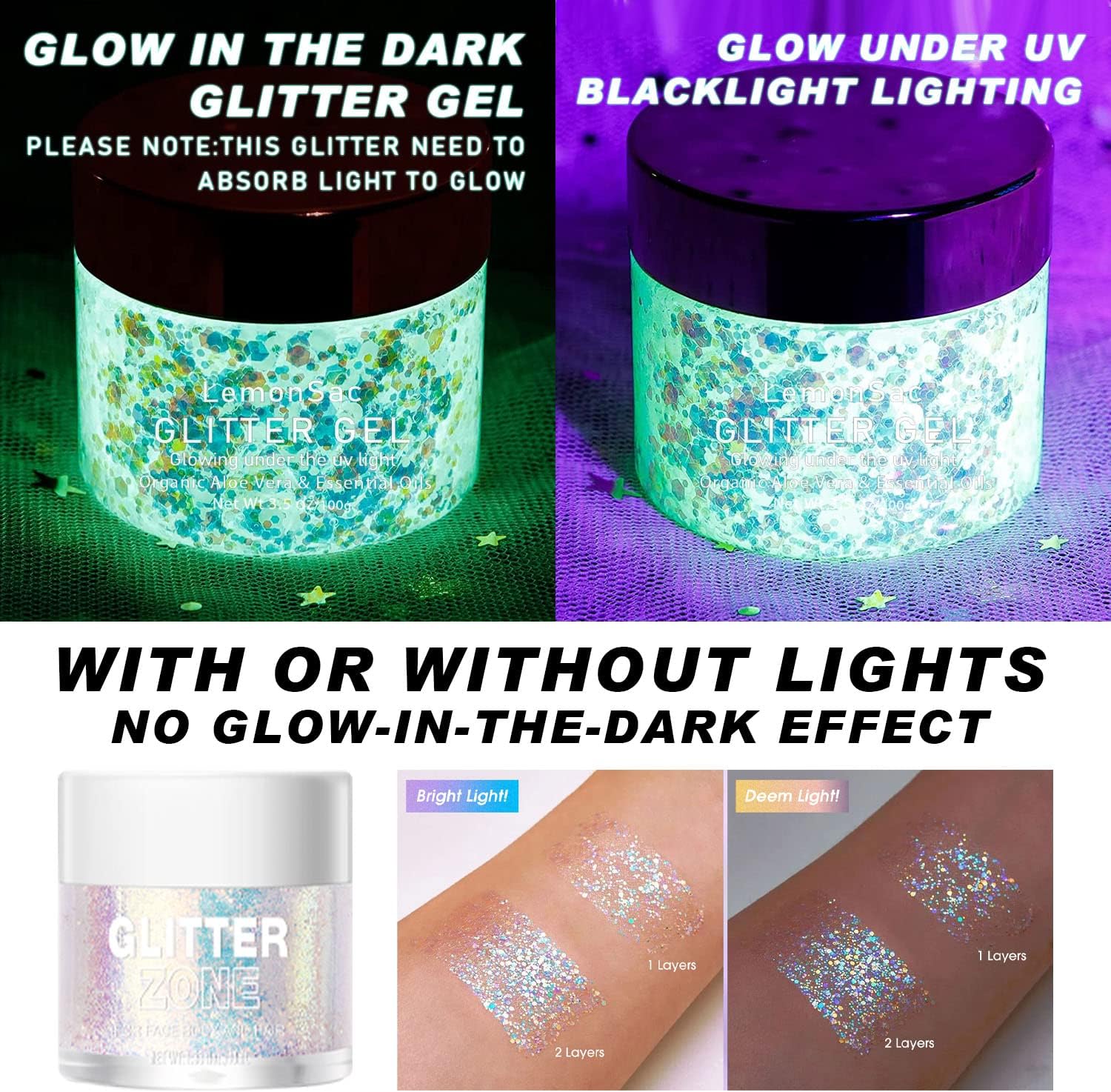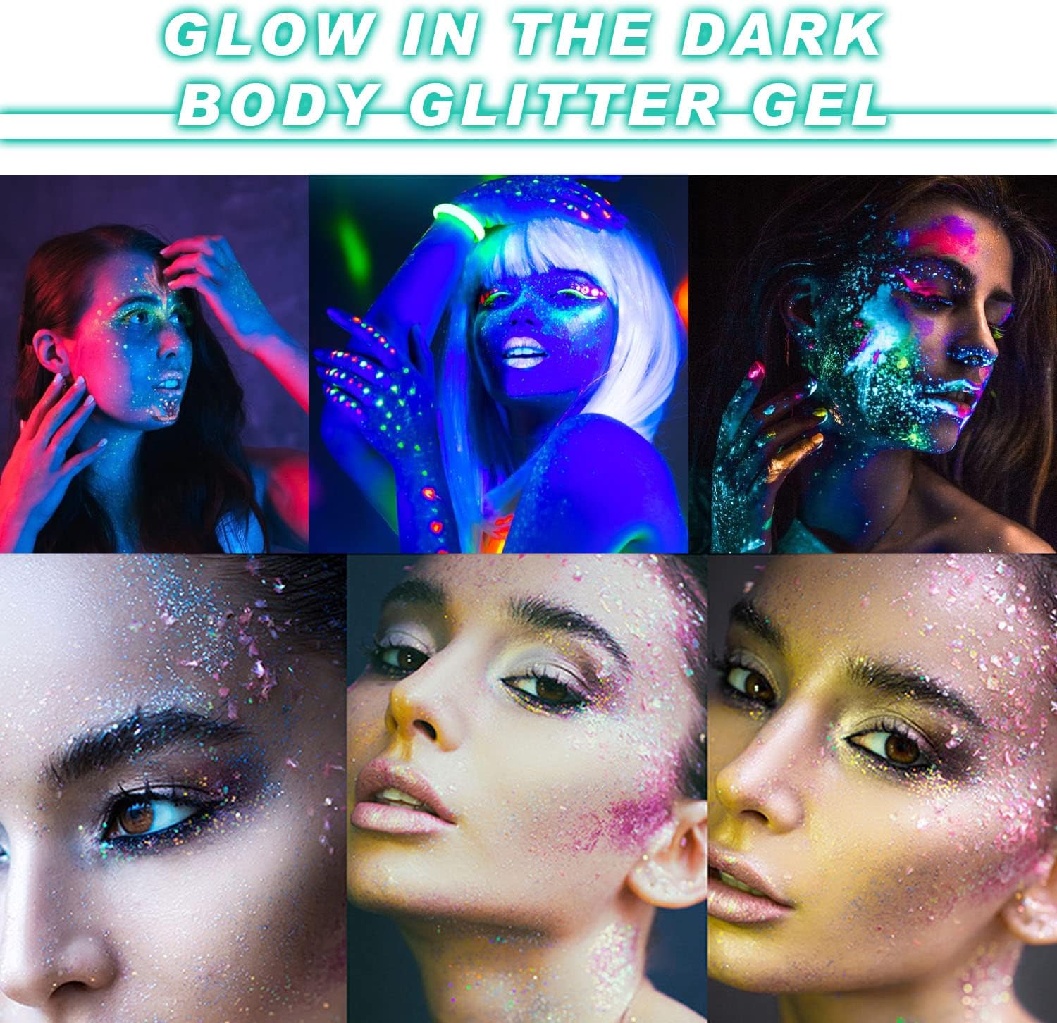 【Variety of colors】Glitter gel is very shiny and dazzling, and every Angle of the glitter is a different color, like a chameleon.Each color comes with its own glitter. This body glitter for women will show different effects under bright and dim lights. When the lights are bright, skin glitter are beautiful and shiny, and can add polish to your makeup. When the lights are low, skin glitter also has a shimmering effect, which will make your skin sparkle in the dark and add to your charm.