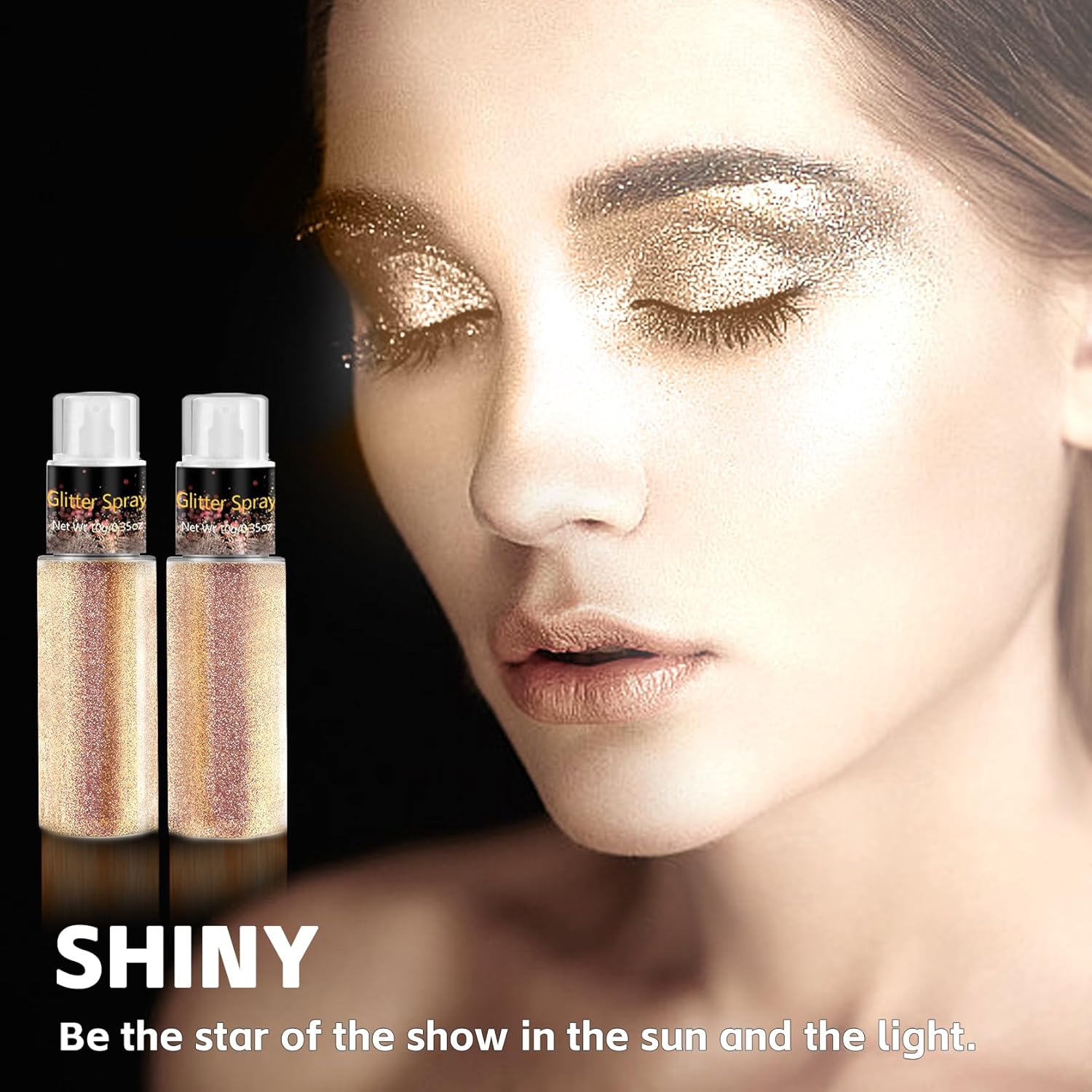 ✦【Ultra-Fine Glitter】Fine powder, lightweight, charming glitter spray with excellent glitter effect, creating colorful makeup effects. Use a moisturizer before applying glitter to reduce shedding and make it stick to the skin longer.