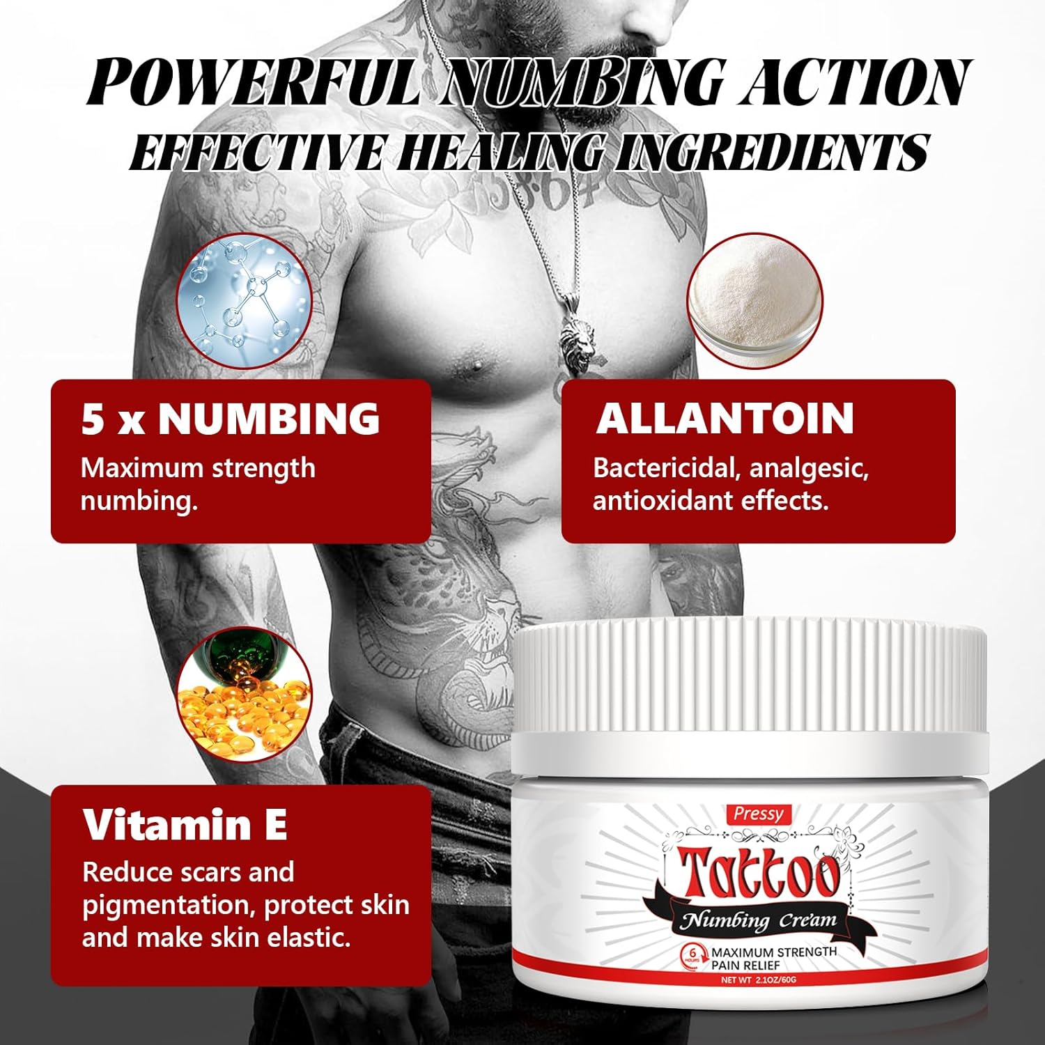 👍【Tattoo Numbing Cream Extra Strength】: With a 60g Large capacity, this numbing cream is perfect for larger tattoo areas. Experience quick and effective relief, making the tattooing process easier and more comfortable.