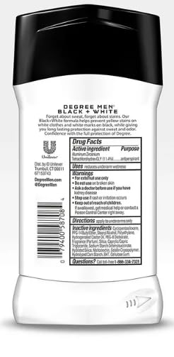 Degree Men UltraClear Black+White Antiperspirant Deodorant with long-lasting MotionSense technology is specially designed to keep your clothes looking new. No white marks on black clothes and no yellow stains on white clothes. You’ll look great all day and be free from deodorant stains. This antiperspirant for men has a formula that cuts down on the stains that some antiperspirants leave behind when they mix with sweat and natural oils produced by your body. It also provides 72-hour sweat and odor protection to keep you moving and free to live life to its fullest. This antiperspirant deodorant stick also contains Degree’s innovative MotionSense technology. It works like this: unique microcapsules sit on the surface of your skin. When you move, friction breaks those microcapsules, and they release more fragrance.