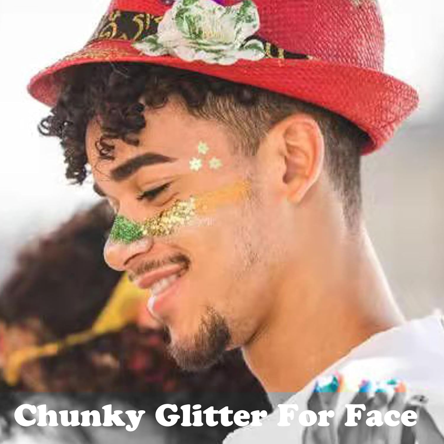 Sparkly Mermaid Body Glitter:Our body glitter gel has a large number of chunky glitter which contains small star sequins,round sequins and hexagon sequins,it is shiny in the light with chunky effect.The glitter is super sparkly,you can also use the body glitter to match mermaid costume or make a mermaid look