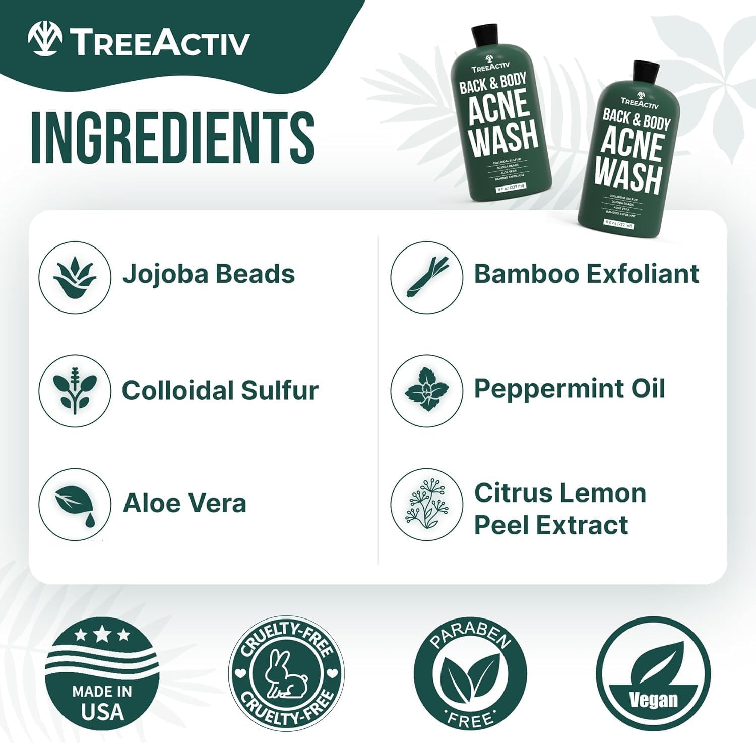 Deep Cleansing: This acne body wash deeply cleanses and detoxifies, removing all traces of dirt, oil, and impurities.