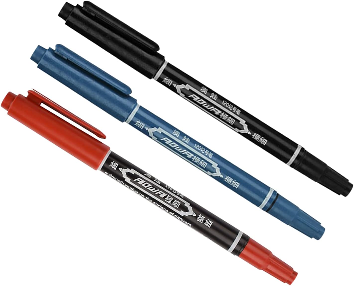 * Pens have tips at both ends:a regular tip (slightly finer than a marker),and an -fine tip for detail workboth tips are anti-clog and make excellent lines.