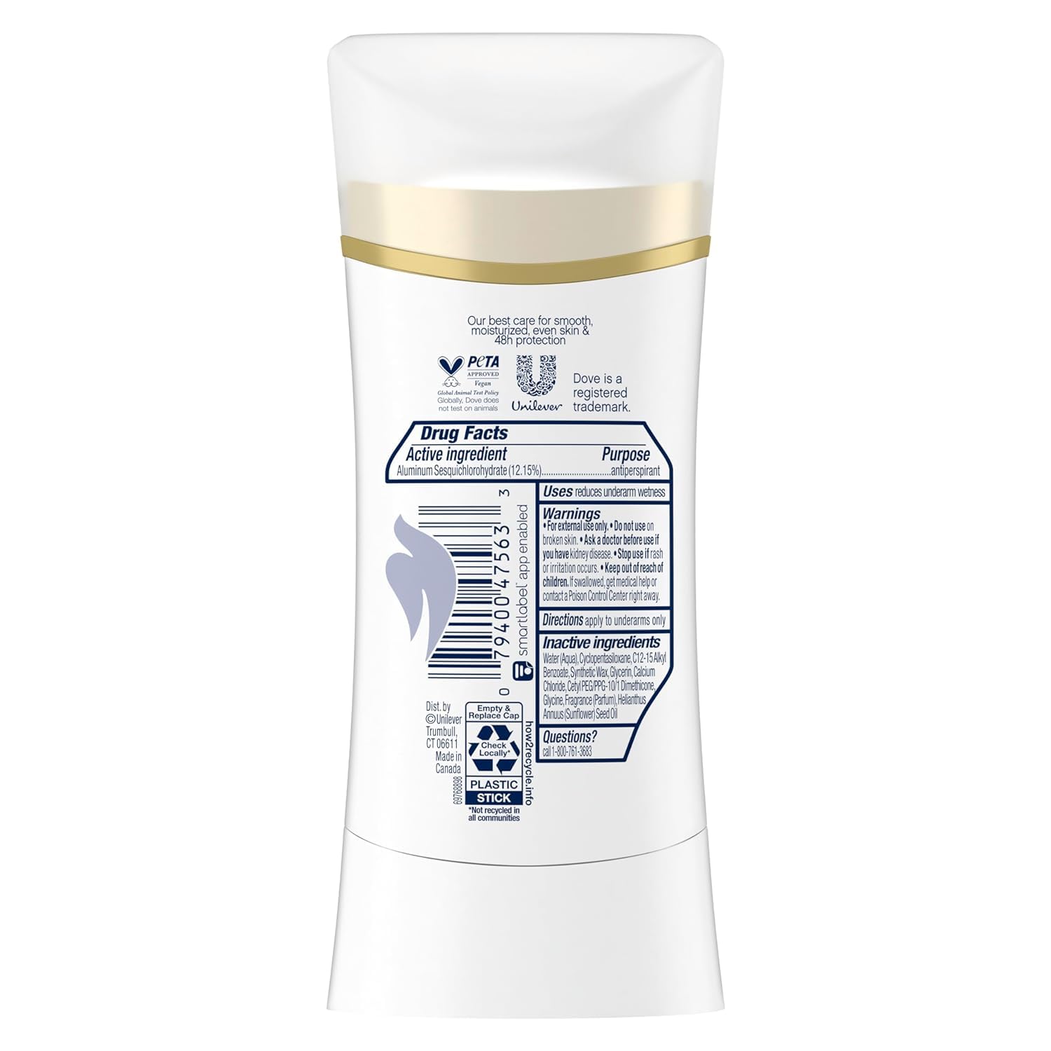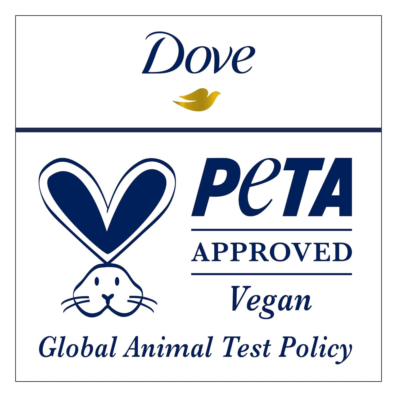 CERTIFIED CRUELTY-FREE ANTIPERSPIRANT: Globally, Dove does not test on animals and is certified cruelty-free by PETA.