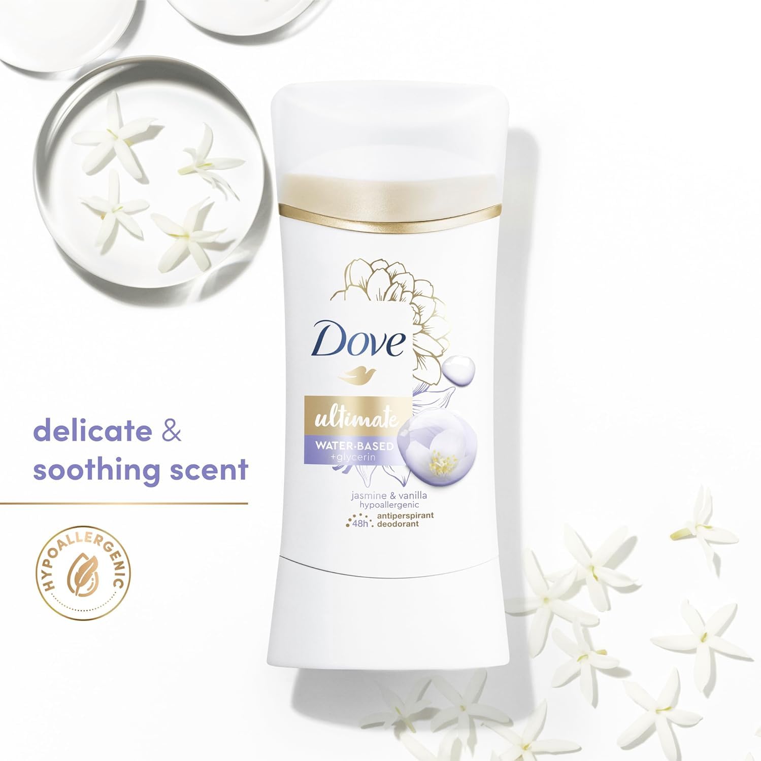 A FRESHER FRAGRANCE: Dove Ultimate Antiperspirant Deodorant Stick treats your senses to a long-lasting indulgent hypoallergenic fragrance with jasmine and vanilla scent.