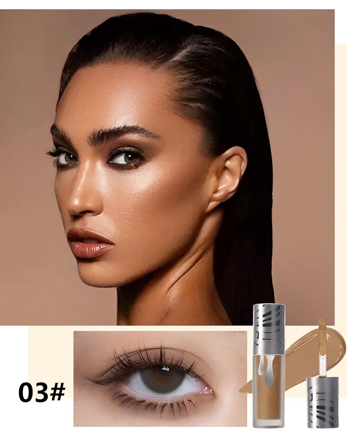 LIQUID EYESHADOW – The Eyeshadow are available in 6 shades. Both the matte effect alone and the matte plus shimmer effect can be obtained here. The shimmer can add sparkle to the monotonous matte surface, naturally deepen the eye contour, for stunning eyes. Reasonable color combination, can obtain different looks.