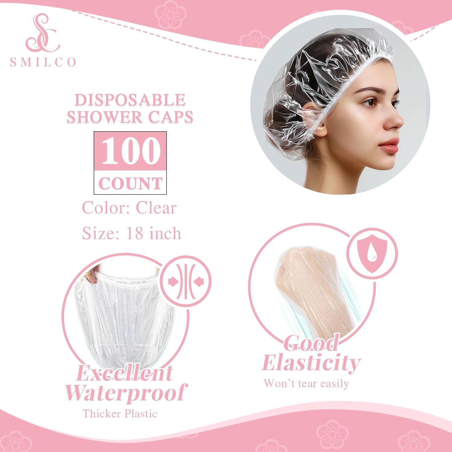 Smilco 20.4 Inch Shower Caps Disposable 100PCS, Shower Cap for Women Large Waterproof Bath & Bathing Accessories, Home & Travel Essentials