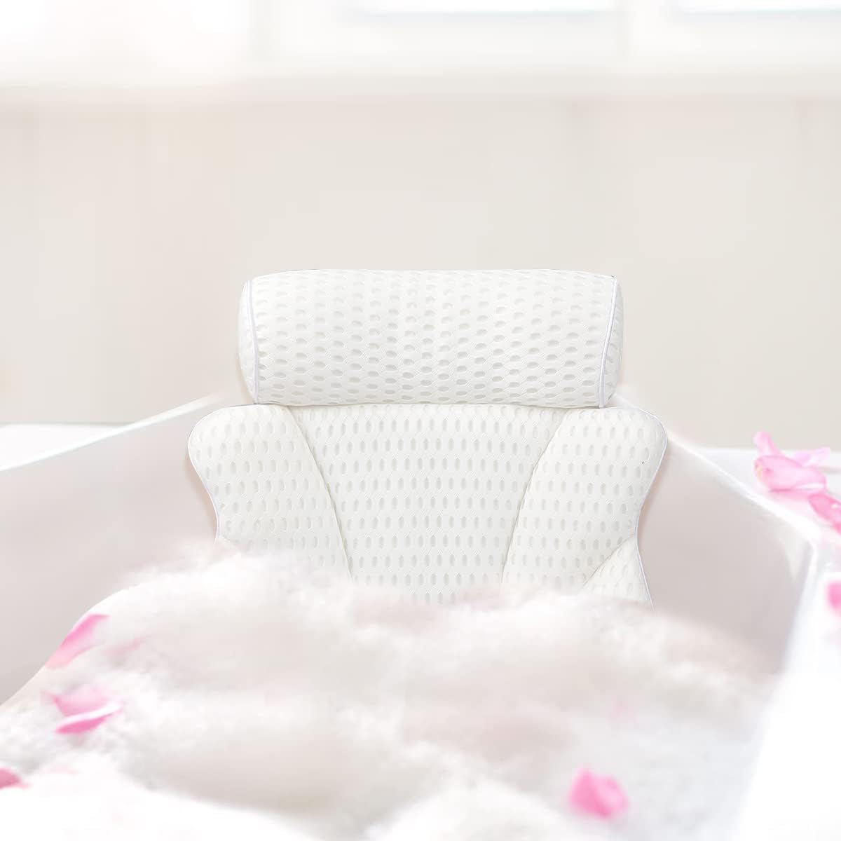 BREATHABLE SOFT 5D AIR MESH:The soft spa bathtub pillow is made with 5D air mesh material,allows the pillow to permeate with Water & Air,dry quickly.