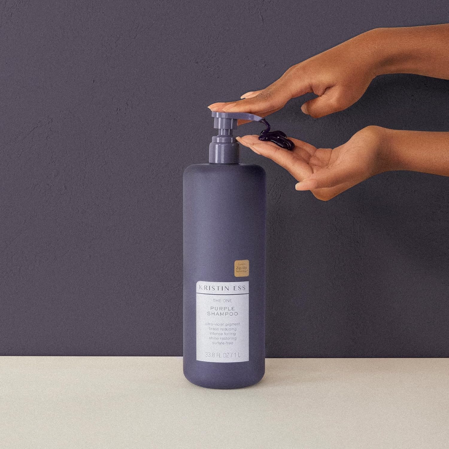 One Purple Shampoo is a sulfate-free, highly-pigmented ultra-violet shampoo that instantly tones natural and color treated blondes and brunettes, removing unwanted yellow tones in hair while cleansing.