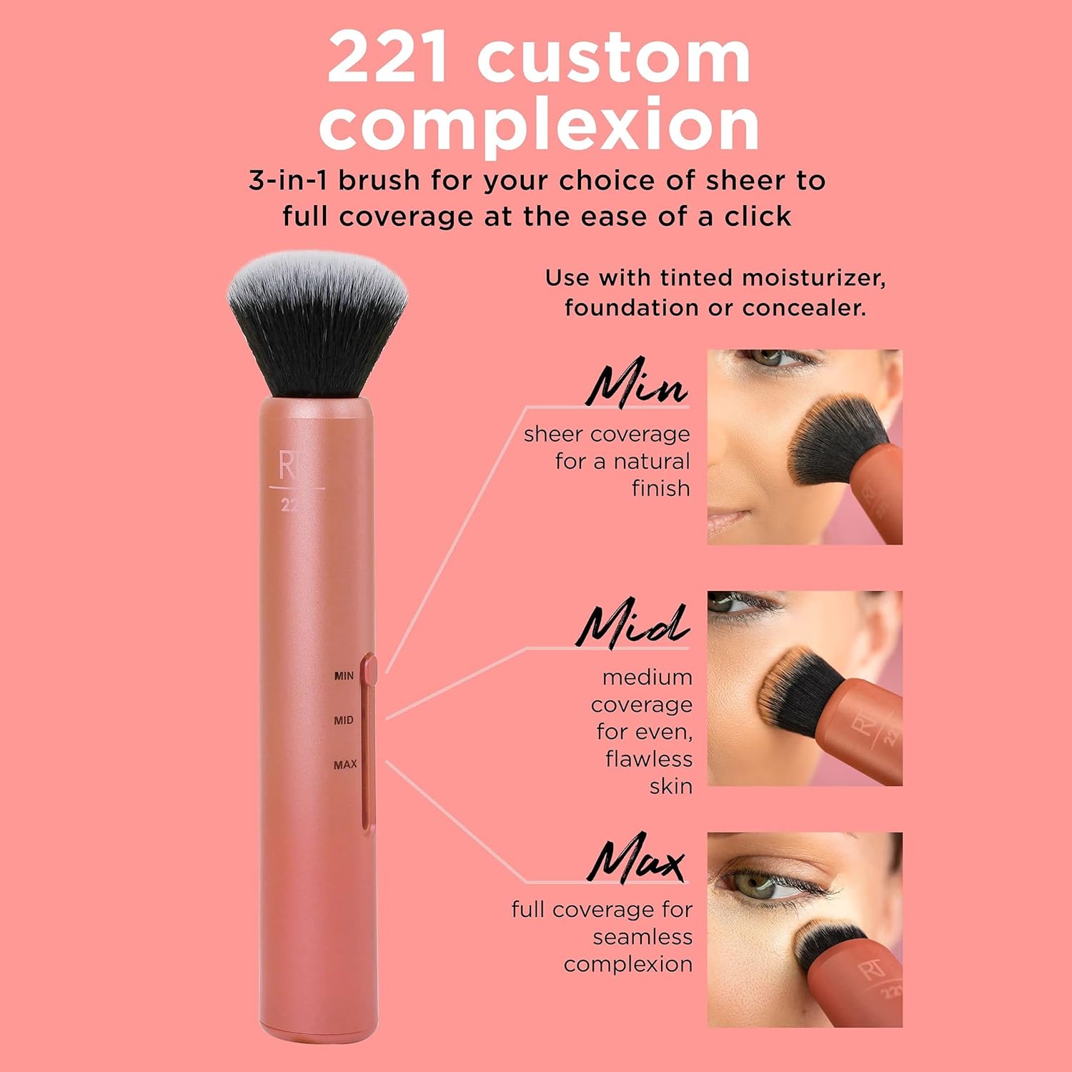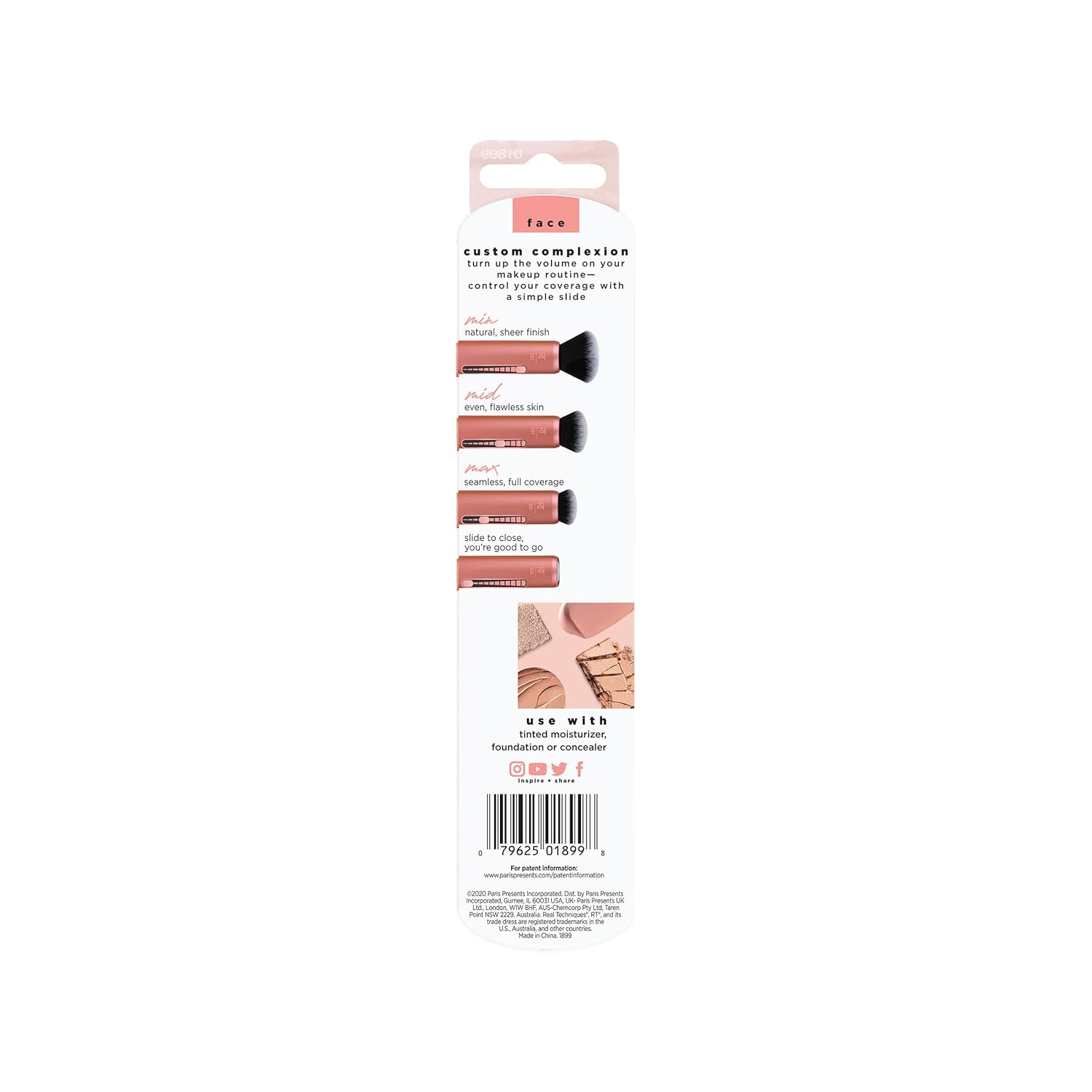 Real Techniques Custom Complexion Foundation 3-in-1 Brush, Custom Slide For Foundation & Concealer, 3 Settings For Sheer, Medium, or Focused Application, Travel-Size Kabuki, Cruelty-Free, 1 Count