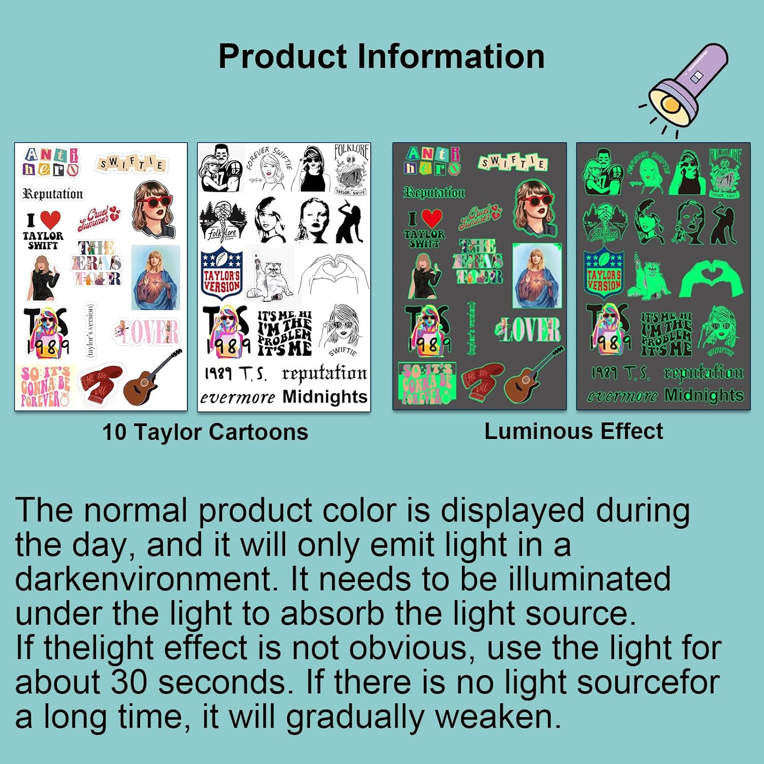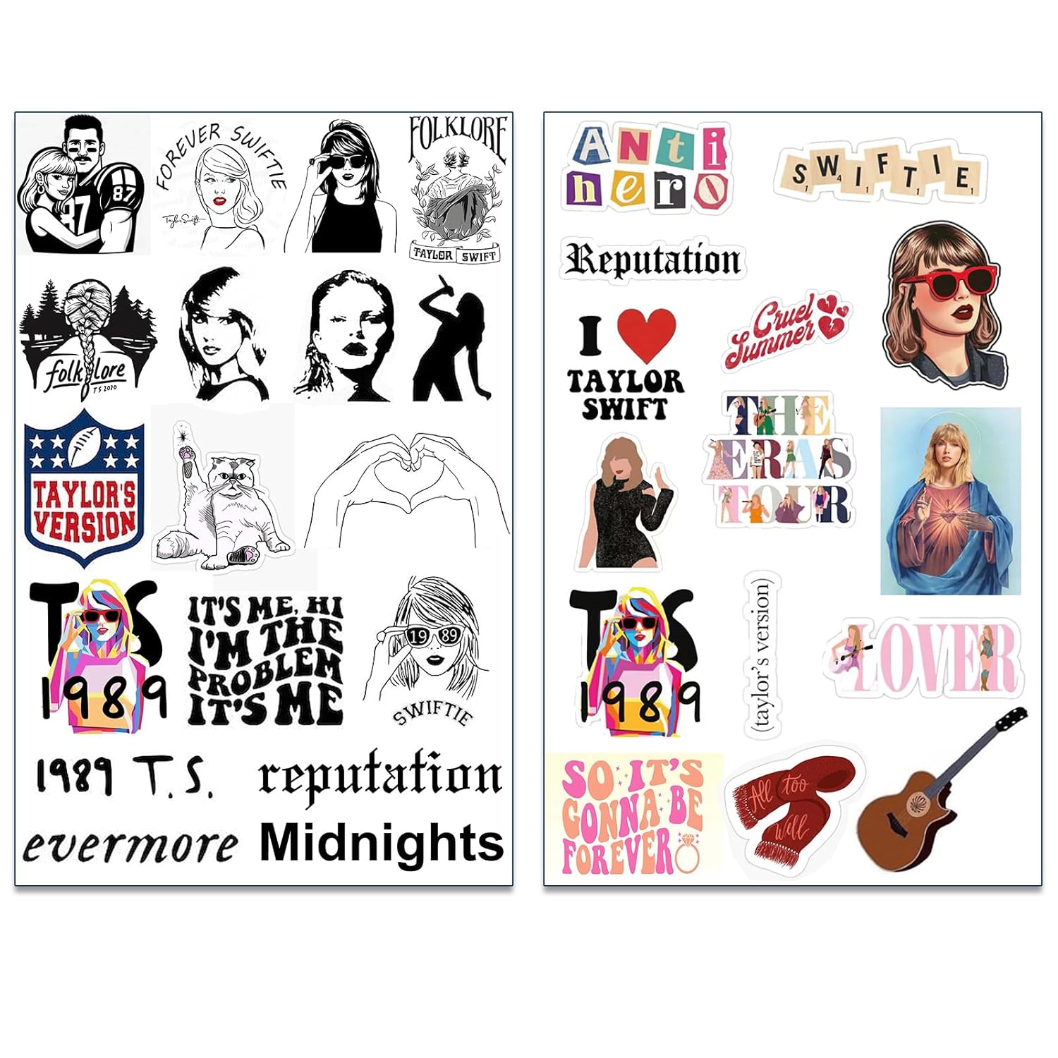 Vibrant Variety: 33 PCS Taylor cartoon tattoos stickers, cute cartoon style design create more fun in the party! Popular hit with your kids. You can apply them to your body or some smooth objects, for example, glass, stationery, paper, crafts cups, cabinet, bottle.