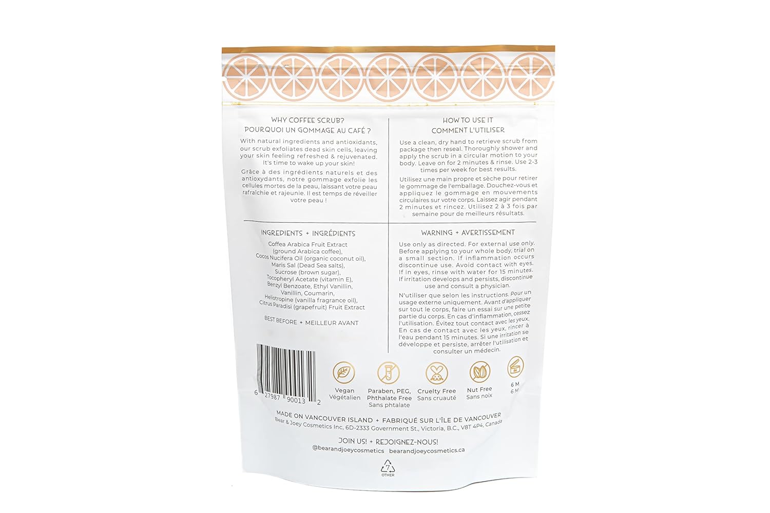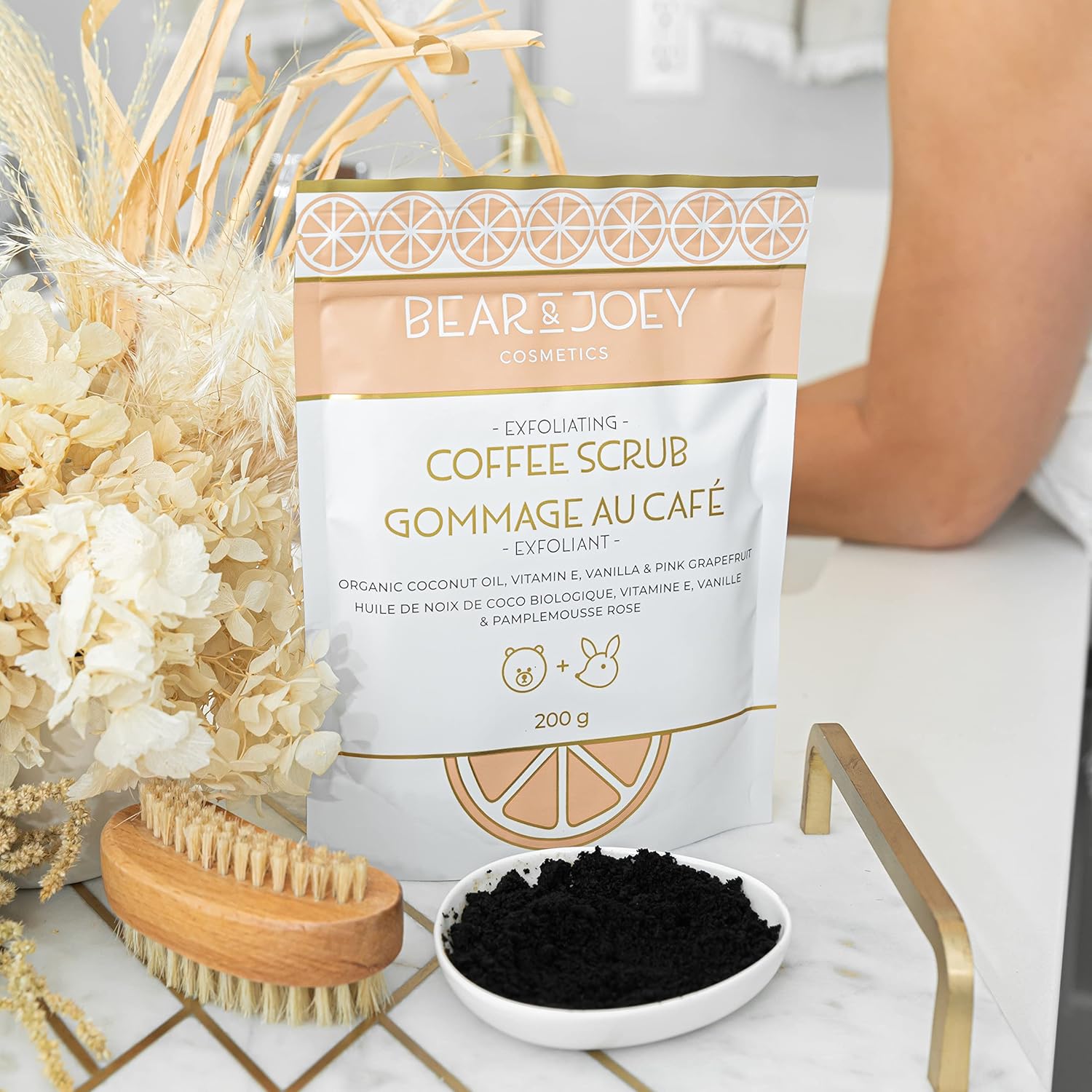 Exfoliating Coffee Scrub by Bear & Joey Cosmetics, Exfoliating Body Scrub for Smooth Skin and Reduced Cellulite Appearance, cruelty free exfoliating scrub (Vanilla & Pink Grapefruit Scent)