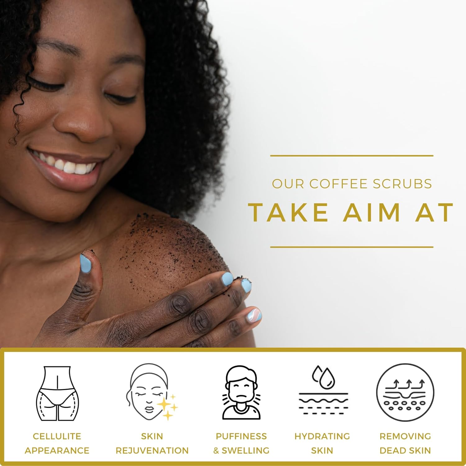 HONEST & EFFECTIVE INGREDIENTS – We only use ingredients you know and trust. Coffee scrub contains upcycled, finely ground Arabica coffee, vitamin e, organic coconut oil, Dead Sea salt, brown sugar & essential oils. We stick to clean, identifiable ingredients that deliver tried-and-true results.