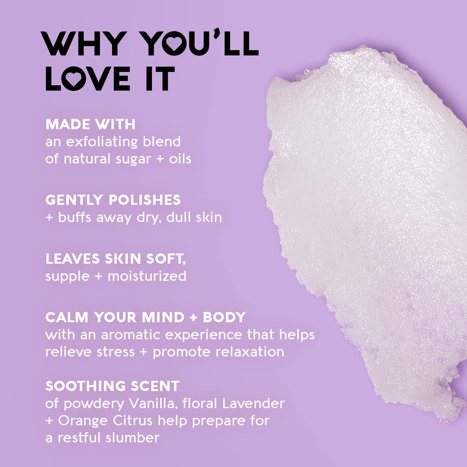 GENTLY EXFOLIATE: Natural sugar buffs away dry, dead skin as you shower or bathe; simply massage onto damp skin, paying special attention to dry, rough spots