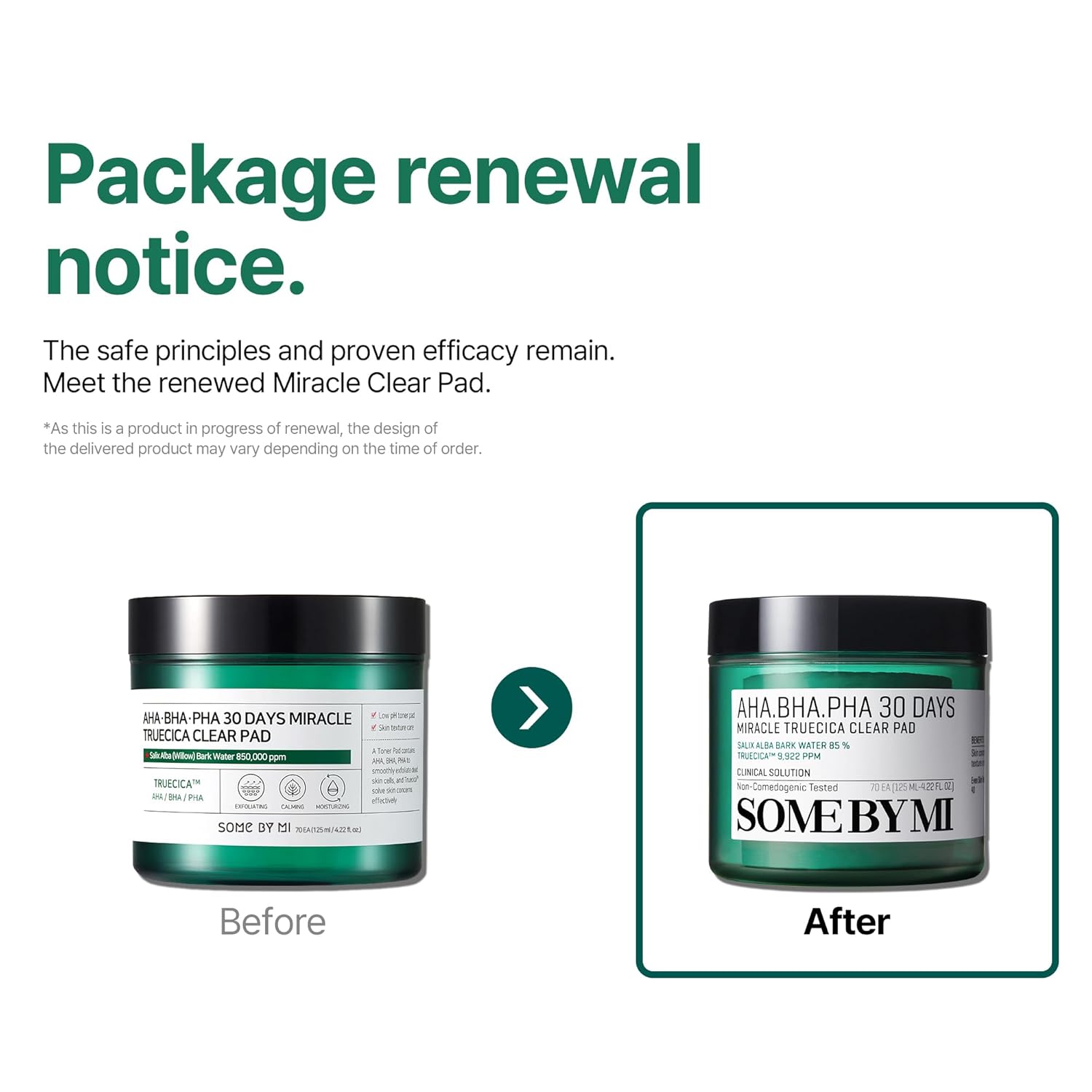 SOME BY MI AHA BHA PHA 30 Days Miracle Truecica Clear Pad – 70 Pads, 4.22Oz – Mild Exfoliating Face Toner Pads Korean for Sensitive Skin – Skin Dead Cells, Wastes and Sebum Care – Korean Skin Care