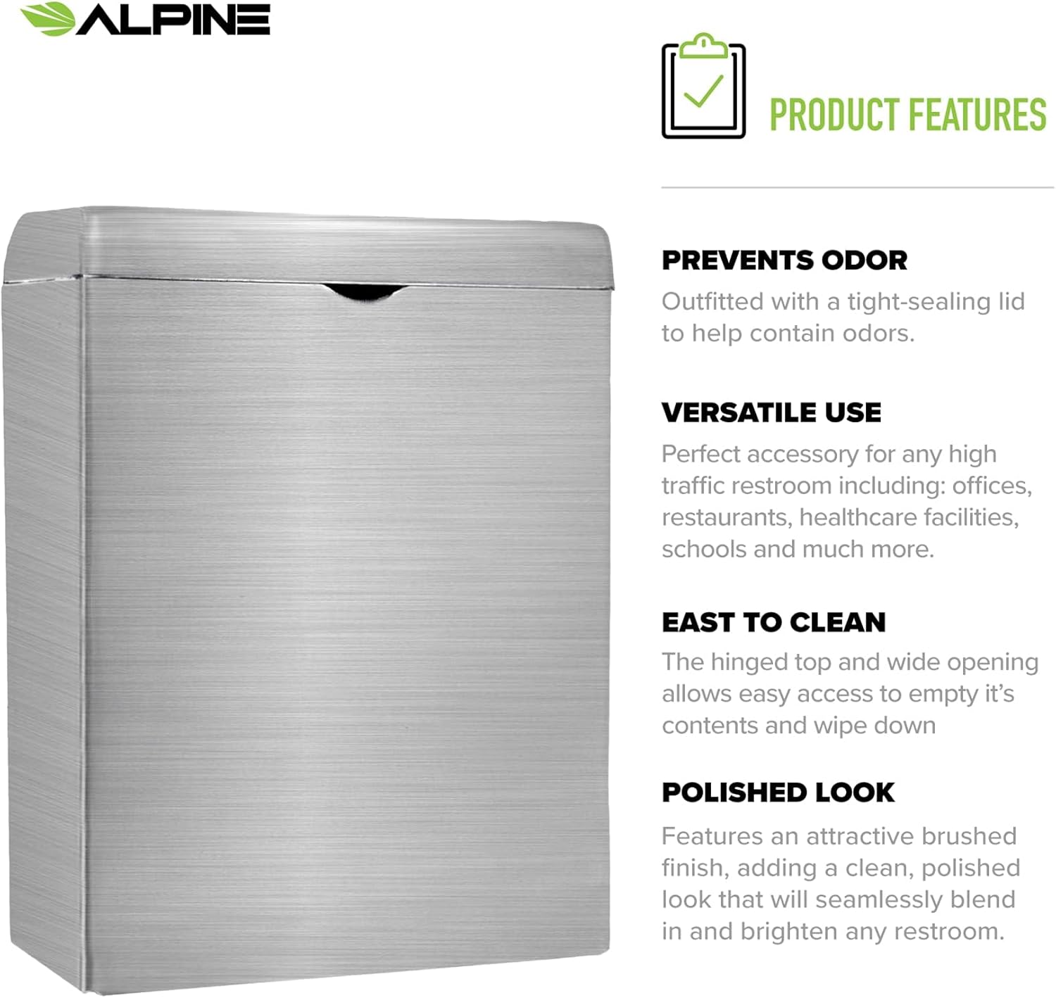 Alpine Feminine Hygiene Disposal Storage Is Built To LIVE LONG Thanks to its Premium Quality Stainless Steel.