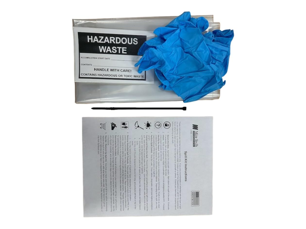 Includes: 1 Spill Kit Bundle: 2 Pairs on Nytrol Gloves, Large Plastic Bag for Containment, Zip Tie for Sealing Bag, Hazardous Waste Lable and English and Spanish Instruction