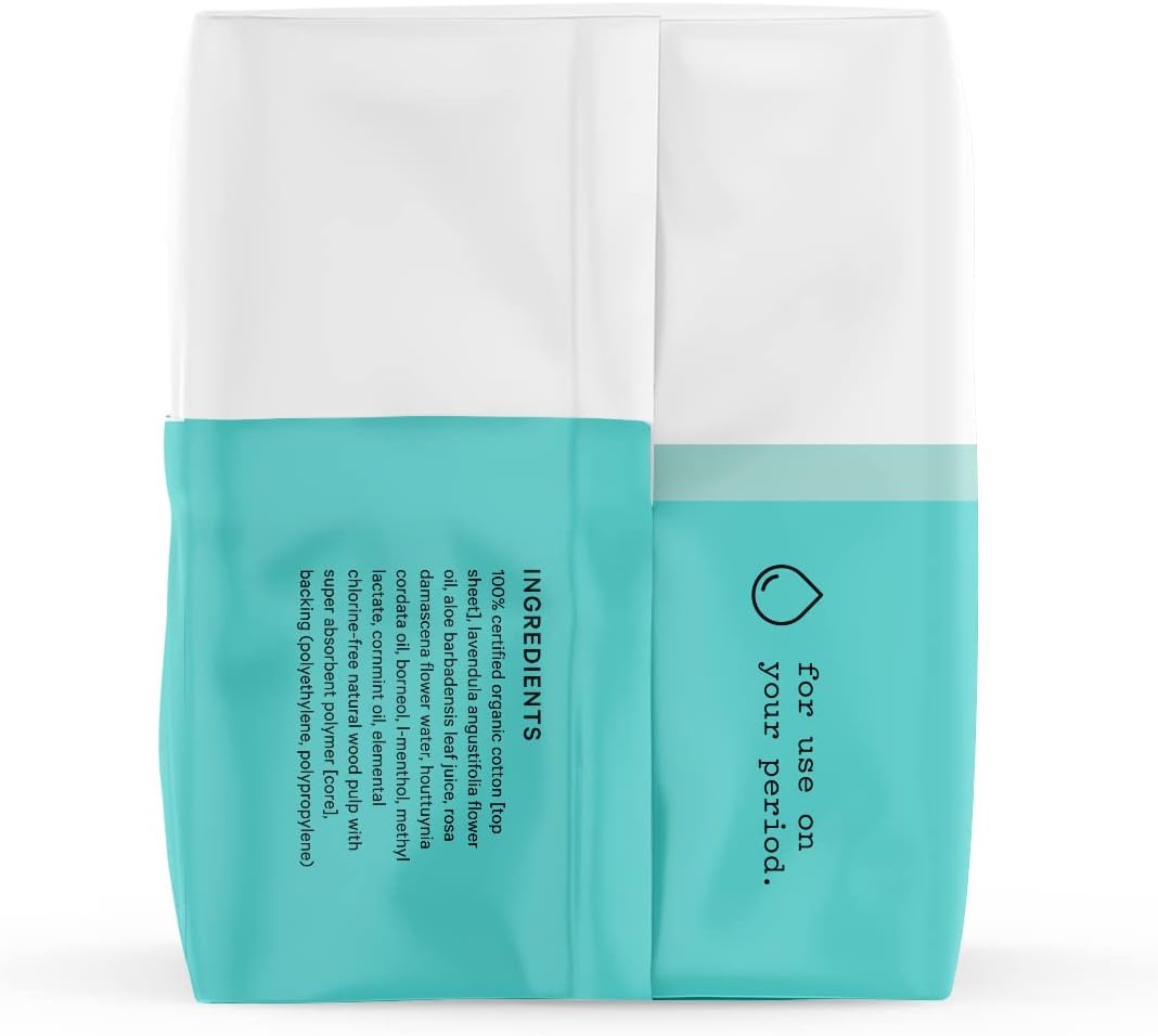 Designed with an OCS certified organic cotton cover with wings and ultra absorbent wood pulp core that is clinically tested, gynecologist and dermatologist approved