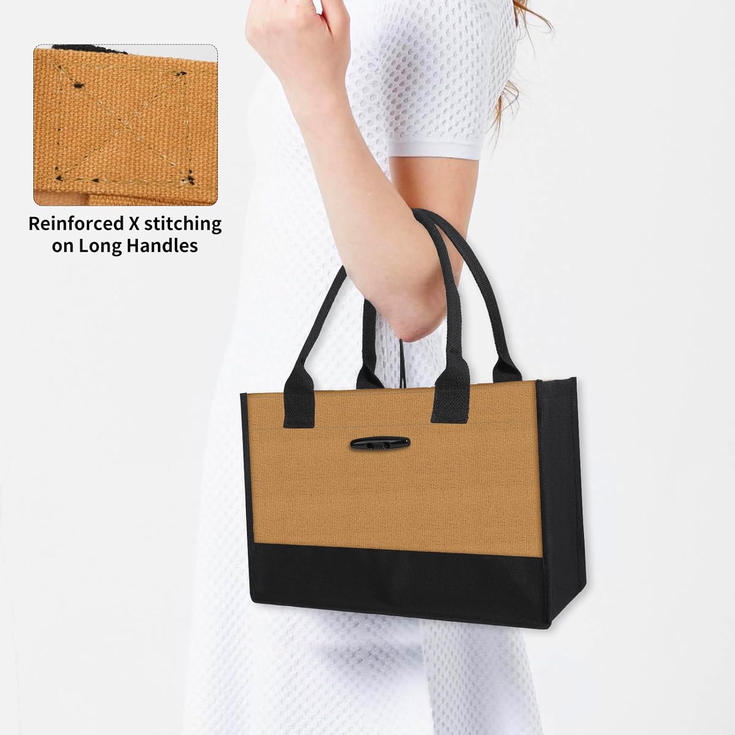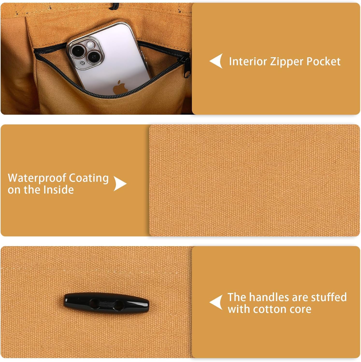 Inner Zipper Pocket & Outer Button Closure: Our canvas tote bag has an inner zipper pocket. The zippered pouch can easily store your small important items like phone, keys, glasses, etc. Easy to pick and place, items won’t fall out. In addition, the canvas tote bag has an outside button closure for efficient storage of more items.