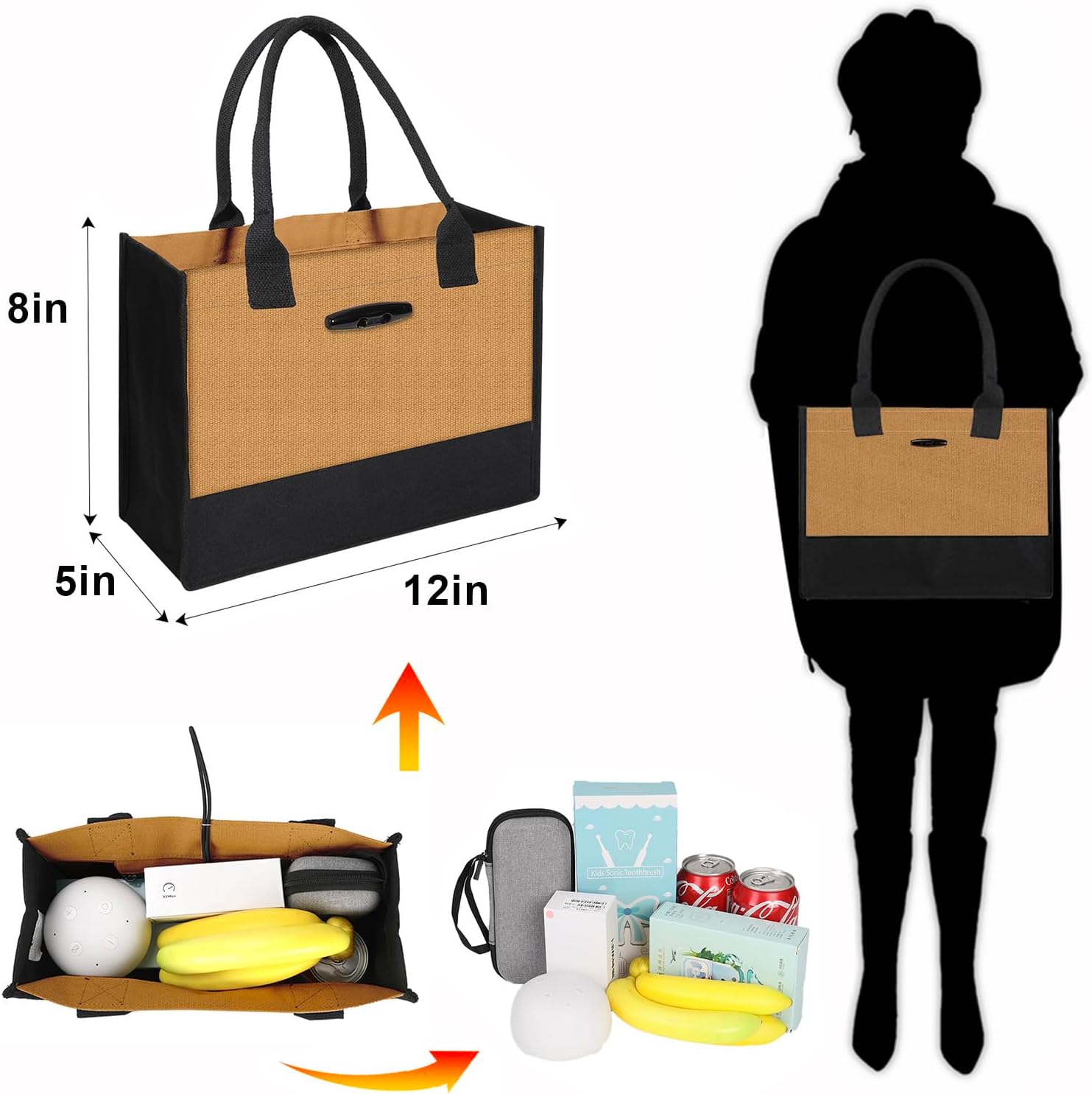 Aricsen Canvas Shopping Tote Bag with Handles, Reusable Blank Burlap Cloth Jute Fabric Handbag for Women, Friends, Sister, Mom Teachers, Suitable for Wedding, Birthday, Beach, Holidays