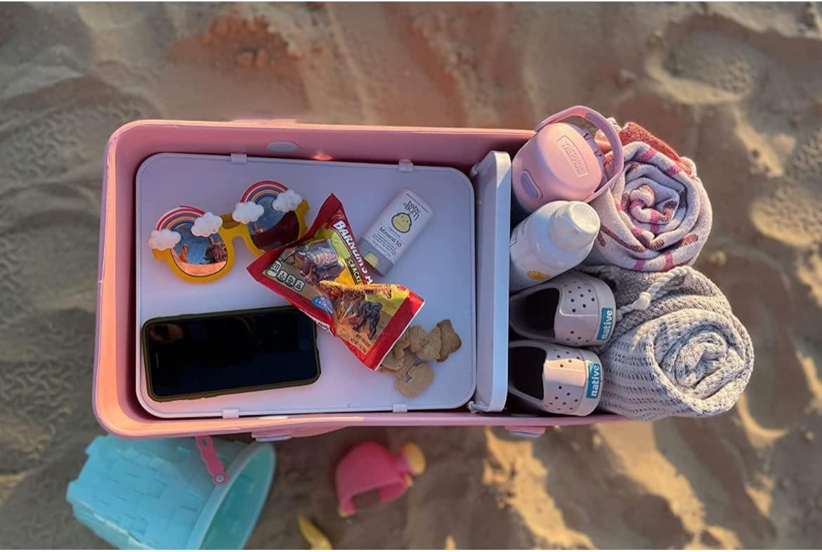 Our patented Original Tote Bag Divider Trays are water proof, easy to wipe down, dishwasher safe, durable and lightweight. The “nubs” are adjustable allowing for multiple placement options. As moms on the go we’ve used these as dividers, snack trays, table tops for games, score cards, a lid to keep items dry in the rain, a lunch making board, and more.