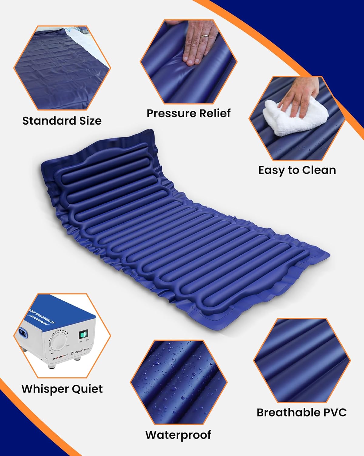 [Doctor Recommended Solution] – Alternating pressure mattresses relieve bed sores and ulcers caused by prolonged bed rest and improve circulation. Ideal for stationary or frail patients who are unable to move their weight regularly to help improve your loved one’s quality of life.