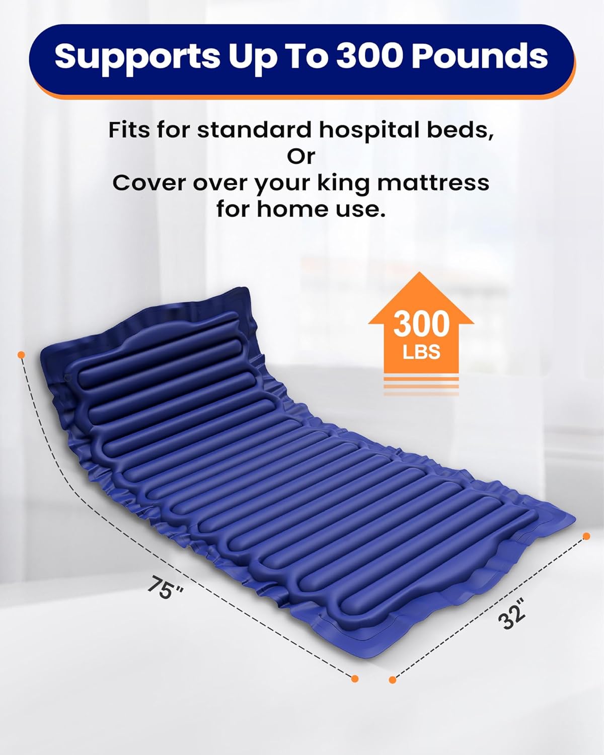 [Medical-Grade Pressure Relief] – Our alternating pressure pad uses bar-shaped inflatable bladders to evenly distribute weight and eliminate pressure points, providing medical-grade pressure relief that helps relieve bedsores, ulcers, and promotes blood circulation.