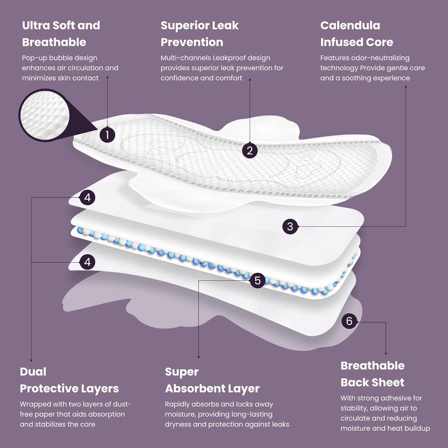 BUBBLE DESIGN TOP SHEET & BREATHABLE BACK SHEET: This feature allows air to circulate and less skin contact, reducing moisture and heat buildup and ensuring comfort over extended periods.