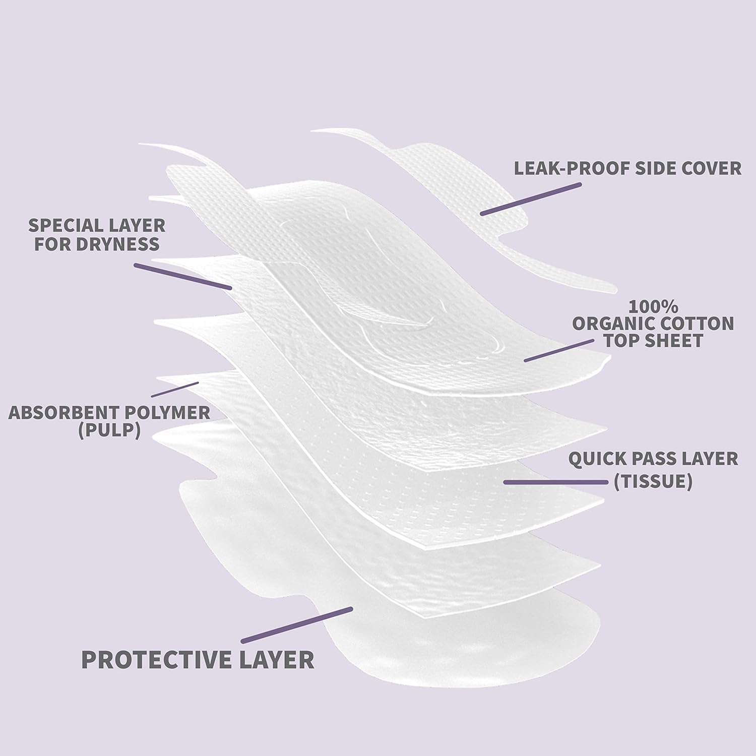 ✔️𝐍𝐀𝐓𝐔𝐑𝐀𝐋 𝐎𝐑𝐆𝐀𝐍𝐈𝐂 𝐏𝐀𝐃𝐒: Our sanitary pads for women are free of harmful chemicals, dyes, fragrances, and synthetics because they are made with 100% non-GMO Organically Texas grown Cotton pad cover and non-toxic adhesive. Organic postpartum pads prevent overflowing and leaks and maintains freshness all day to keep you feeling drier, longer. Safe and suitable for all women and skin types.
