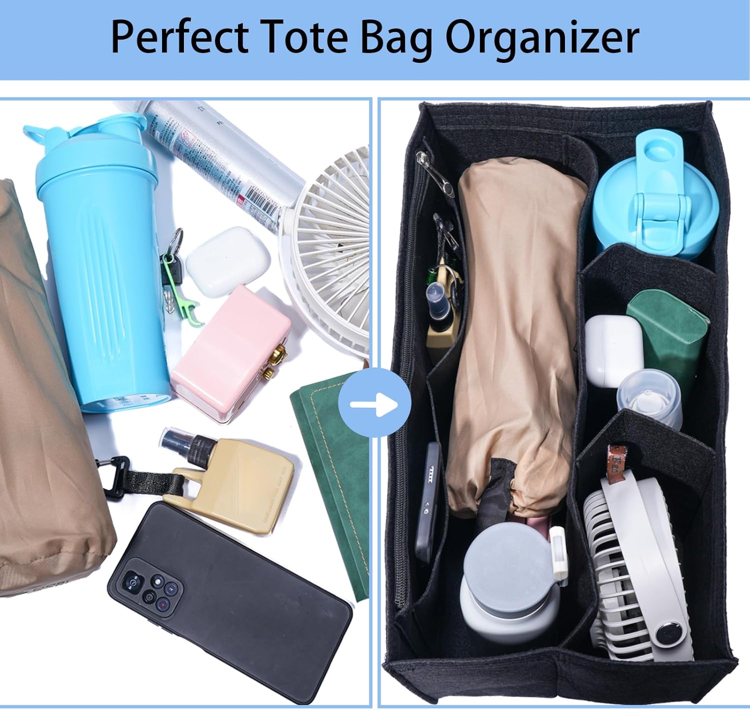 Tote bag insert helps you organize everything in your bag and make more rational use of space. It is very suitable for girls and ladys