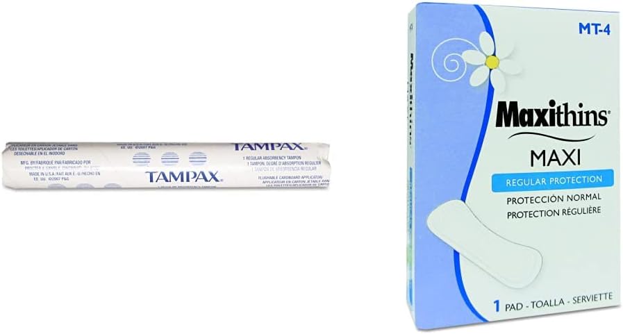 Individually wrapped tampons and napkins protect from contamination (Tampax and Maxithins).