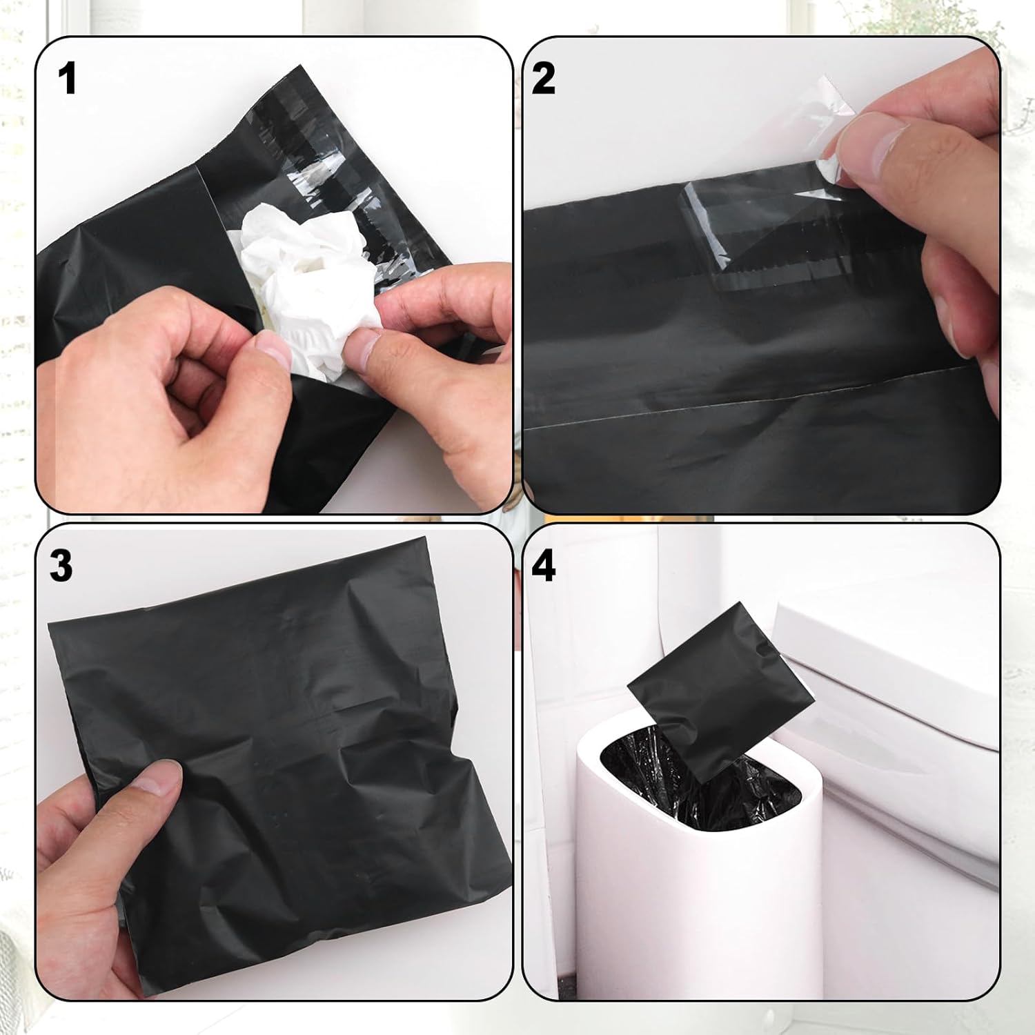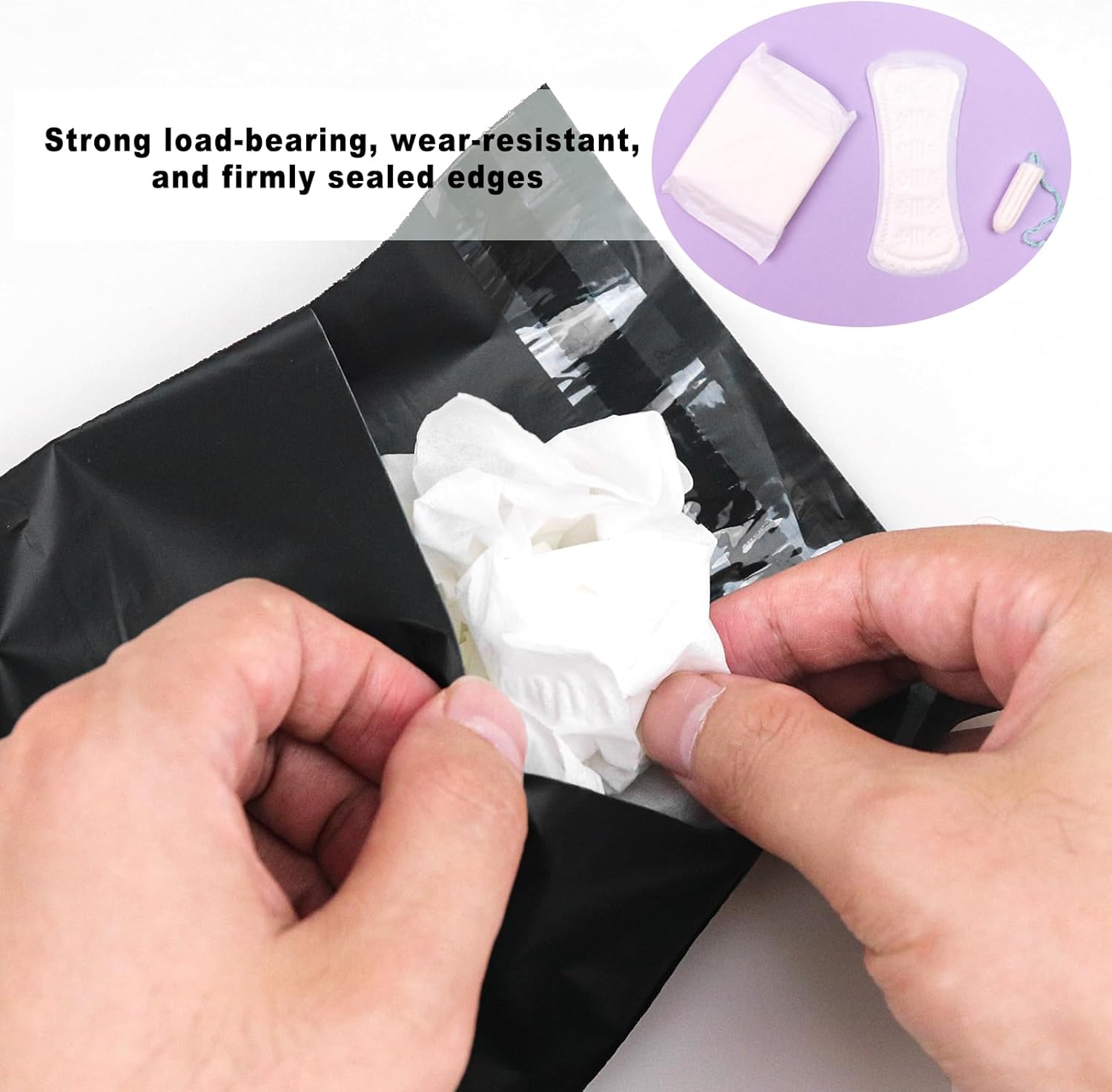 Seal Design: The design of the padded bag comes with a seal, The sanitary napkin treatment bag is opaque and can completely hide the contents inside, which can effectively protect your privacy. You can quickly stuff the padding and tampon into the bag, and then stick a seal to prevent exposure to the odor.