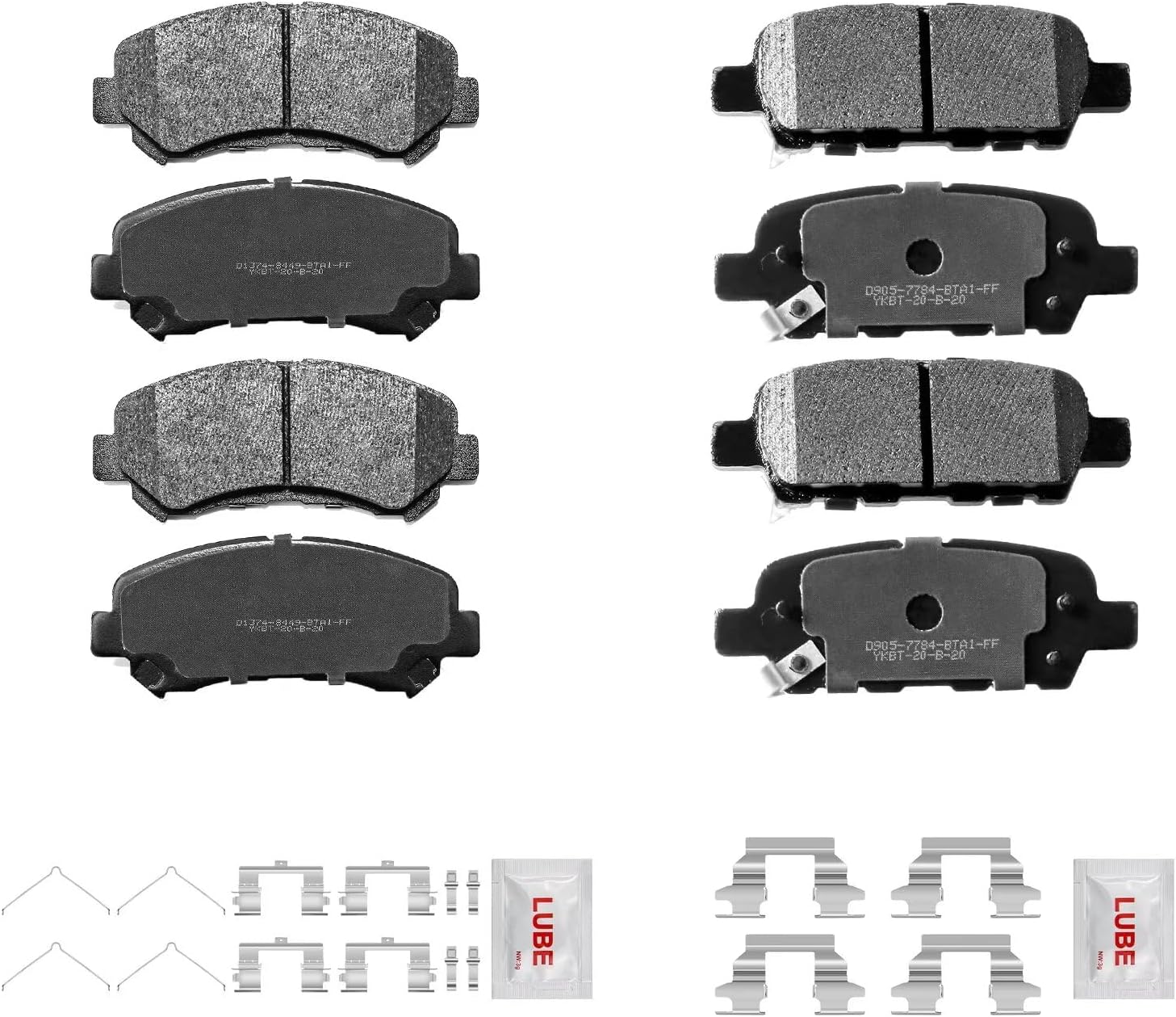 4pcs Front Brake Pads S-13744pcs Rear Brake Pads S-905Stainless-steel HardwareSynthetic Lubricant