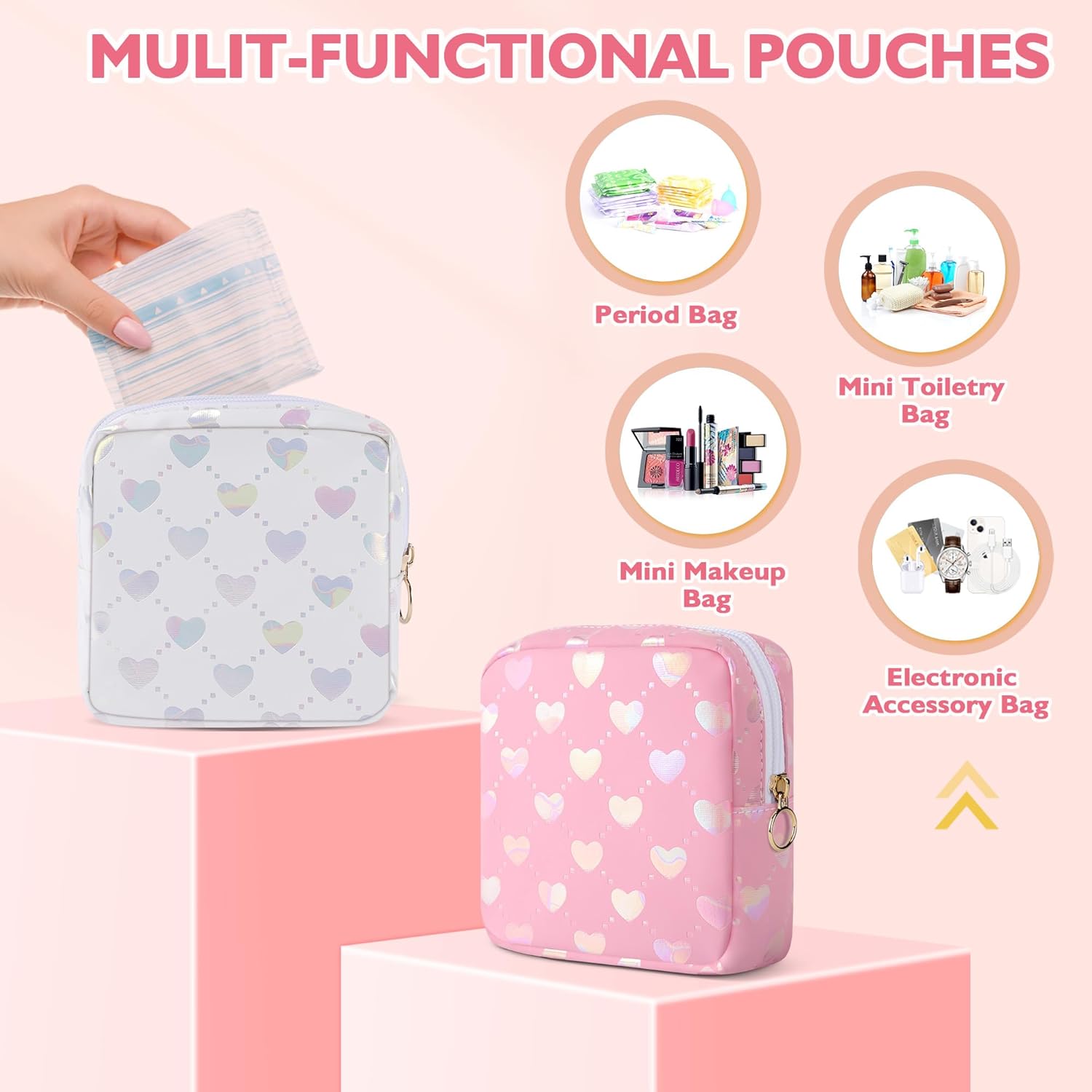 Sanitary Pouch for Women: The small period pouch is a multifunctional bag for feminine product pouch items, not only for sanitary napkins, but also for feminine menstruation pad holder, menstrual tampon pouches, small cosmetics