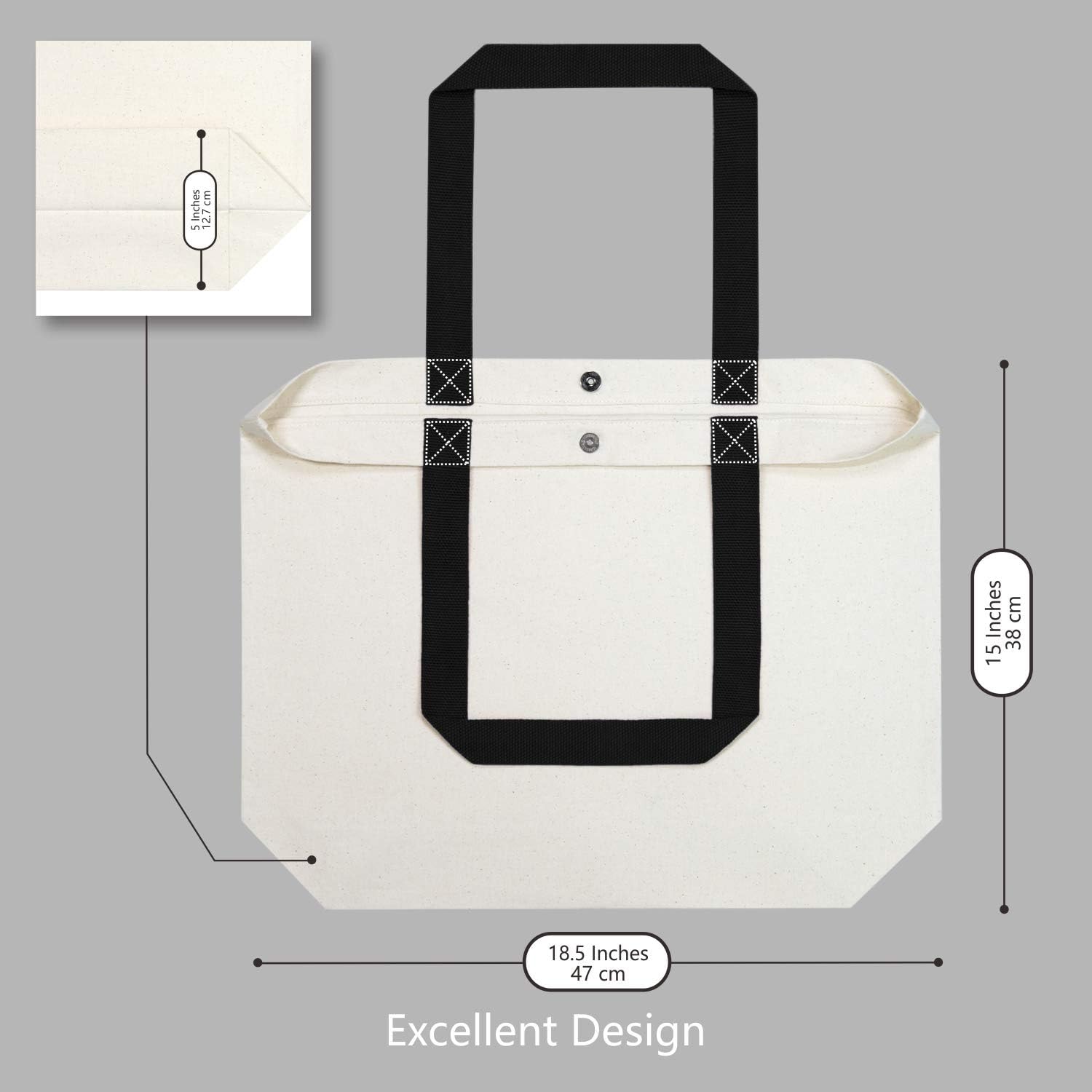LARGE CAPACITY & DURABILITY: 18.5″L x 4.72″W x 15″H, made of 8oz canvas, with heavy weight stitching throughout, including cross-stitching at the handles for maximum strength allowing the bag to hold up extra bearing capacity. With two reinforced black webbing handles sized 1.18″W x 23.62″L, convenient to carry in hand or wear on your shoulder, sturdy enough for all kinds of daily use.