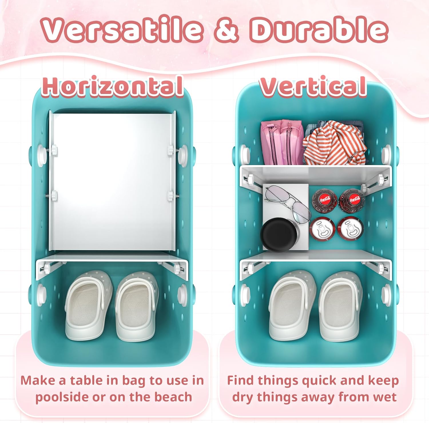 【Adjustable Position】These bogg bag divider fit both vertically and horizontally. For vertical, bogg divider great for keeping dry clothes away from wet or to keep smaller things separate so they’re easier to find. For horizontal, The bogg bag divider trays like a little table in your bog bag, It will be great for grab things quickly at the beach, like sunglasses, sunscreen, drink, snacks and etc.