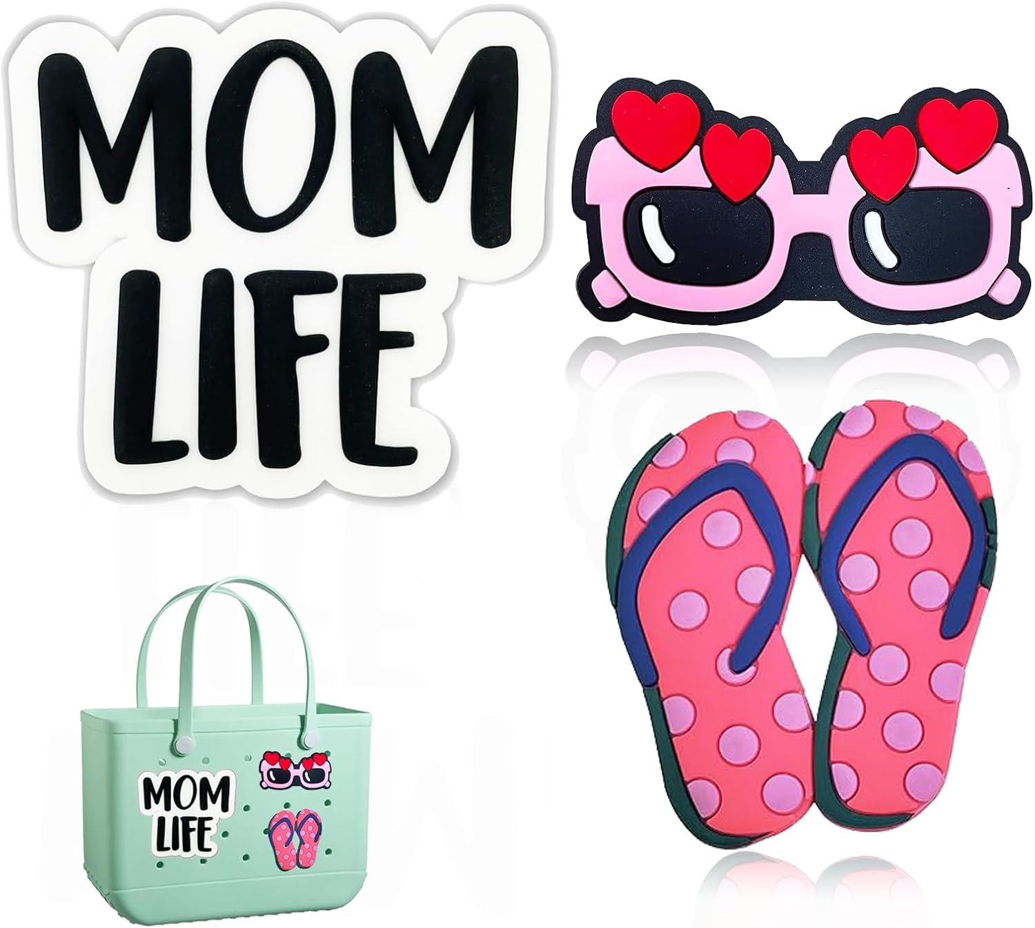 【Bogg Bag Accessories Include】1* pink sunglasses charm, 1 “momlife” charm and 1 pink slippers charm for Bogg Bag. With these eye-catching bogg bag insert, ensuring you stand out with a unique and customized look.