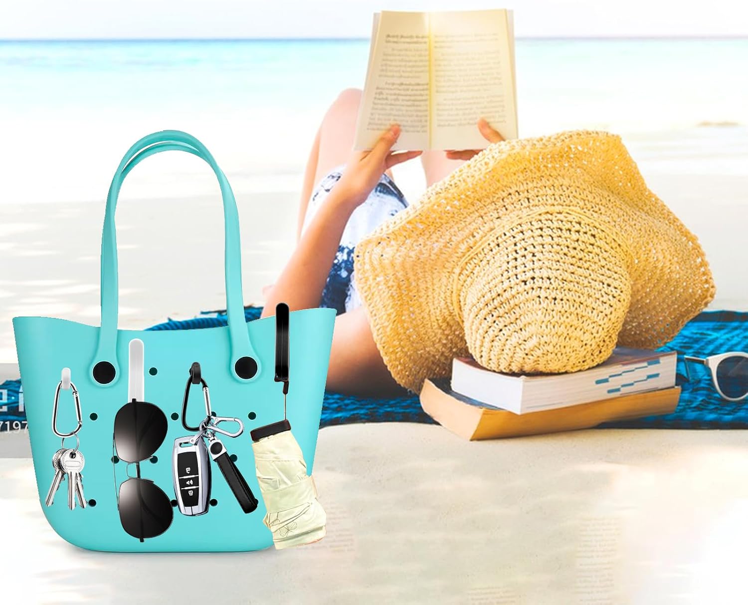 4 Pcs Hooks Set Accessories Compatible for Bogg Bag, Bogg Bag Accessories, Insert Carabiner Key Chain Holder Charms, Compatible for Small & Large Beach Bags (White)