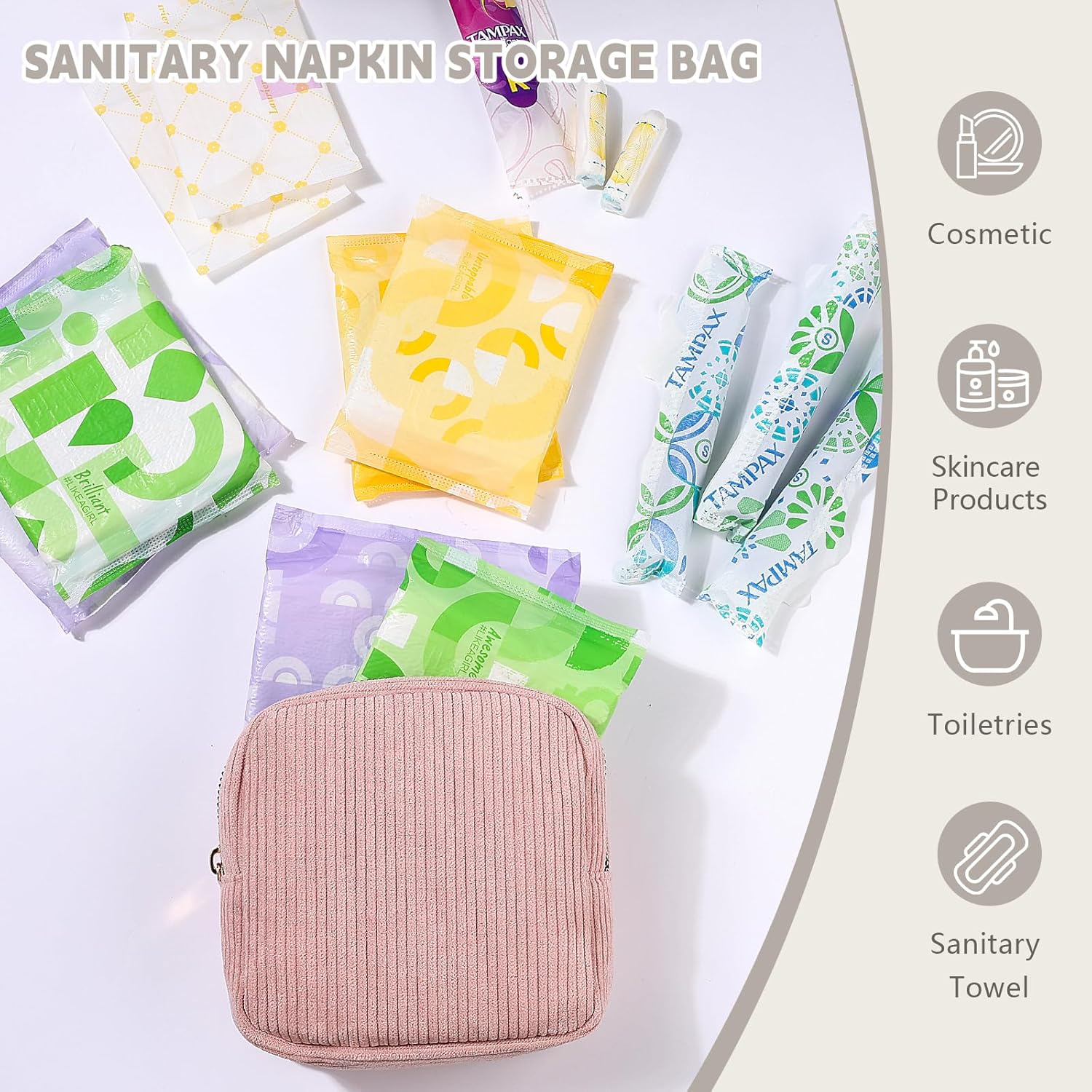 【6 Bright & Colorful Colors】The tampon organizer is available in your choice of 6 color styles. Tampon storage bag make of thickened corduroy fabric, soft, comfortable to touch, easy to clean, no fade
