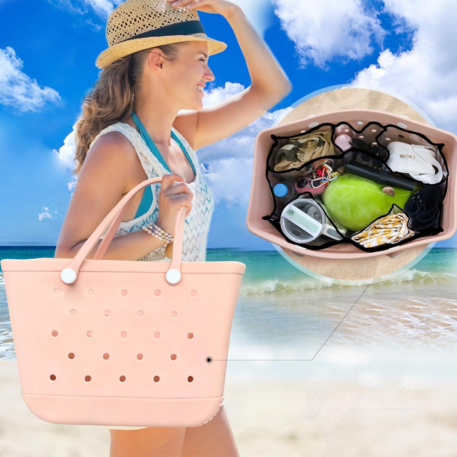 Introducing our Clear Beach Bag Organizer Accessories, perfect for anyone looking to stay organized while at the beach!