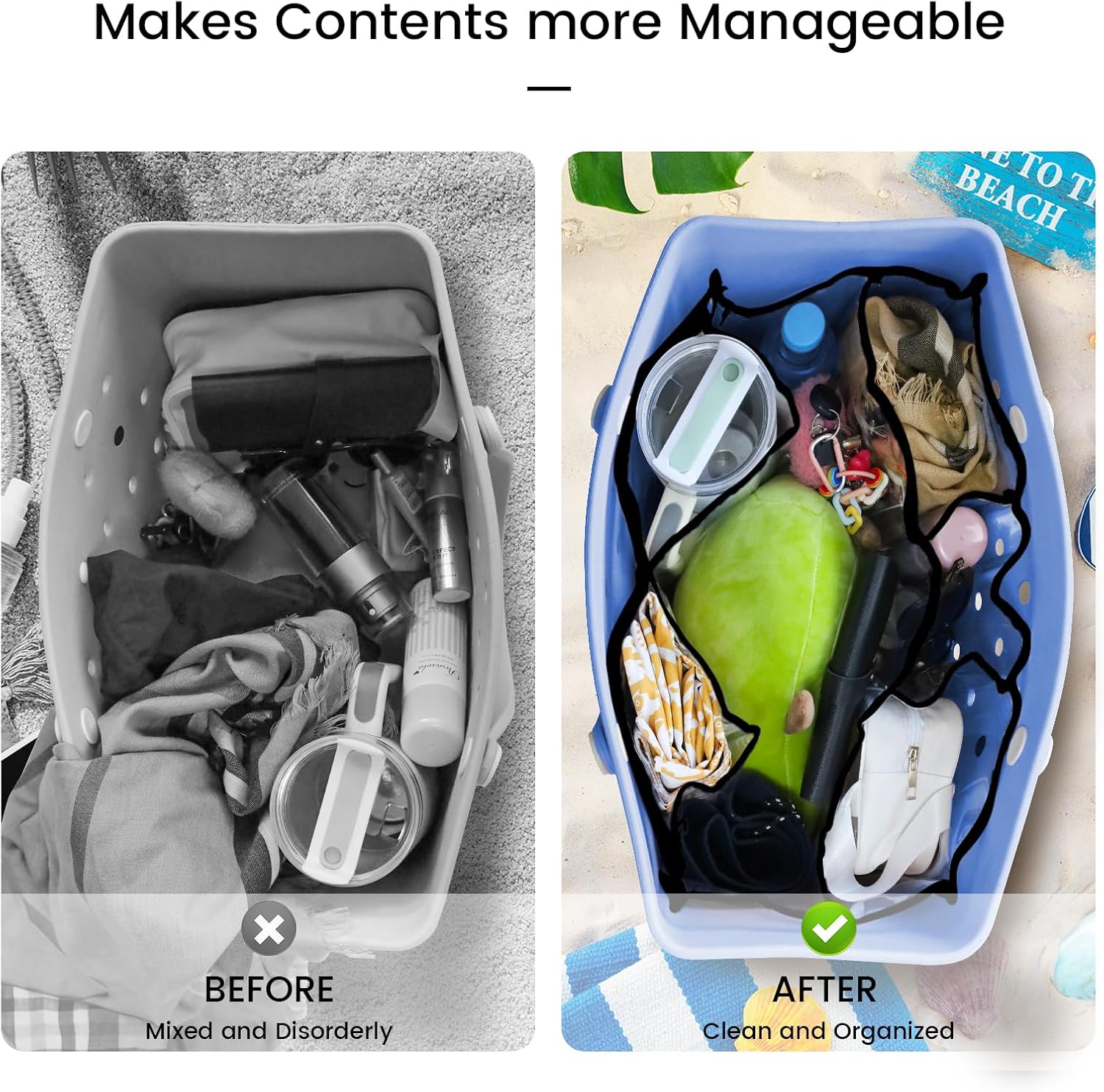 【Original Your Bag and Divide Design】Our organizer is designed to perfectly fit and complement your Bogg Bag X Large, with a clear design that allows you to easily see what’s inside.