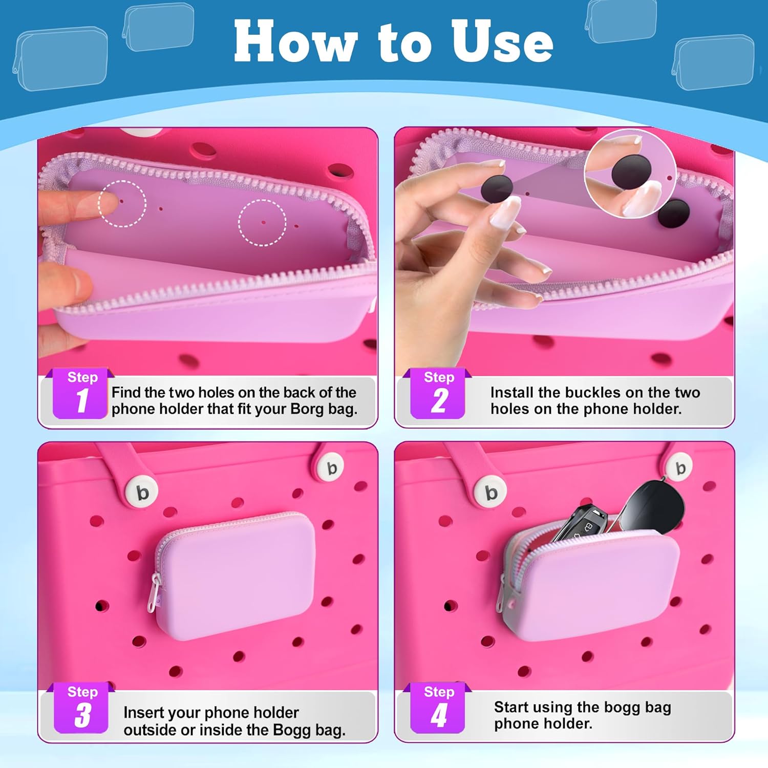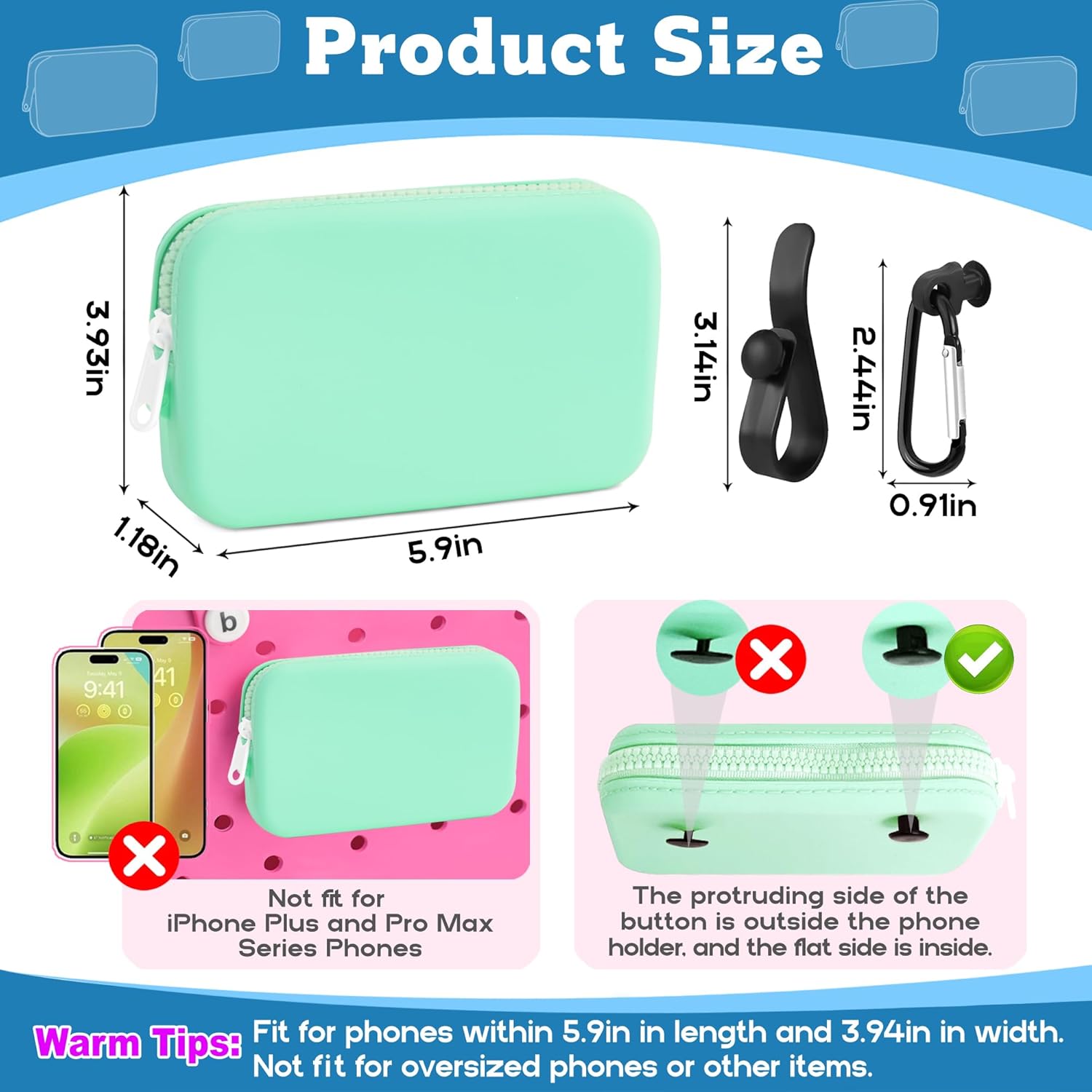 【Comprehensive Support】 – The package include 1 bogg bag silicone phone holder with zipper, 4 pairs of buckles, 1 hook and 1 carabiner. If you are not satisfied with our products in any way, please contact us and we will give you a perfect solution.