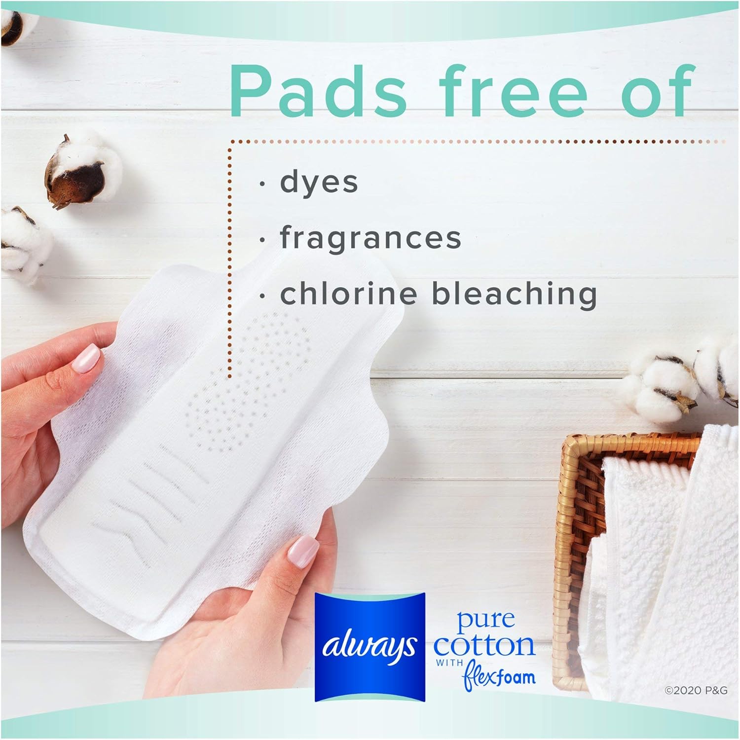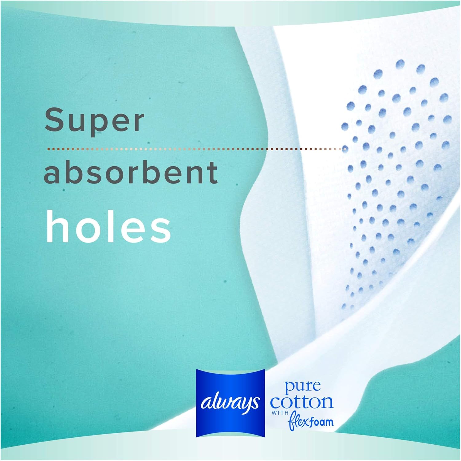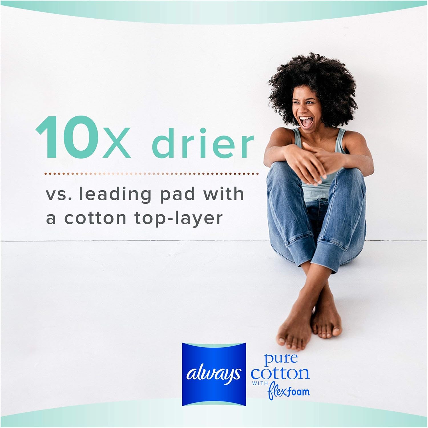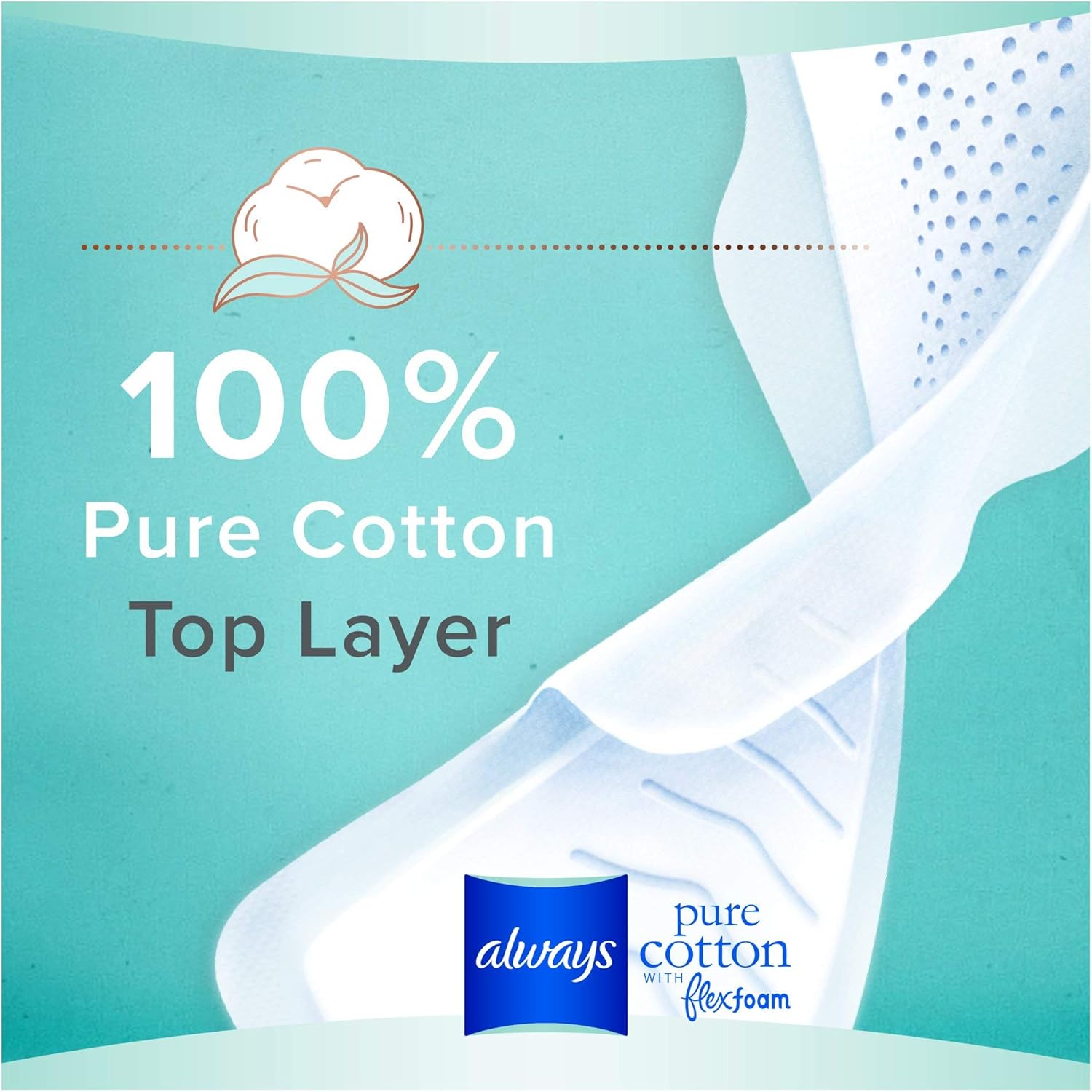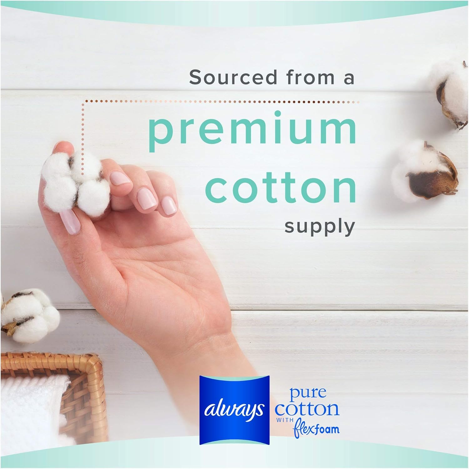 No feel, no fail period protection is possible with Always Pure Cotton with FlexFoam Regular Absorbency period pads.