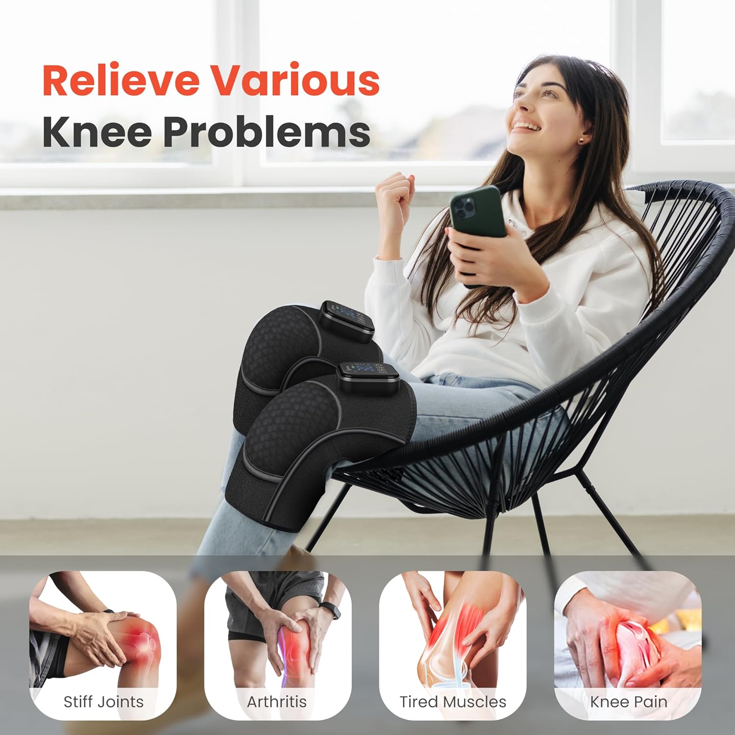 Vibrating Massage: Each knee heating pad is equipped with two vibration motors, offering three vibration modes and three intensity levels. This cordless knee massager, eligible for FSA and HSA, delivers customized massages for different muscle areas, easing tension.