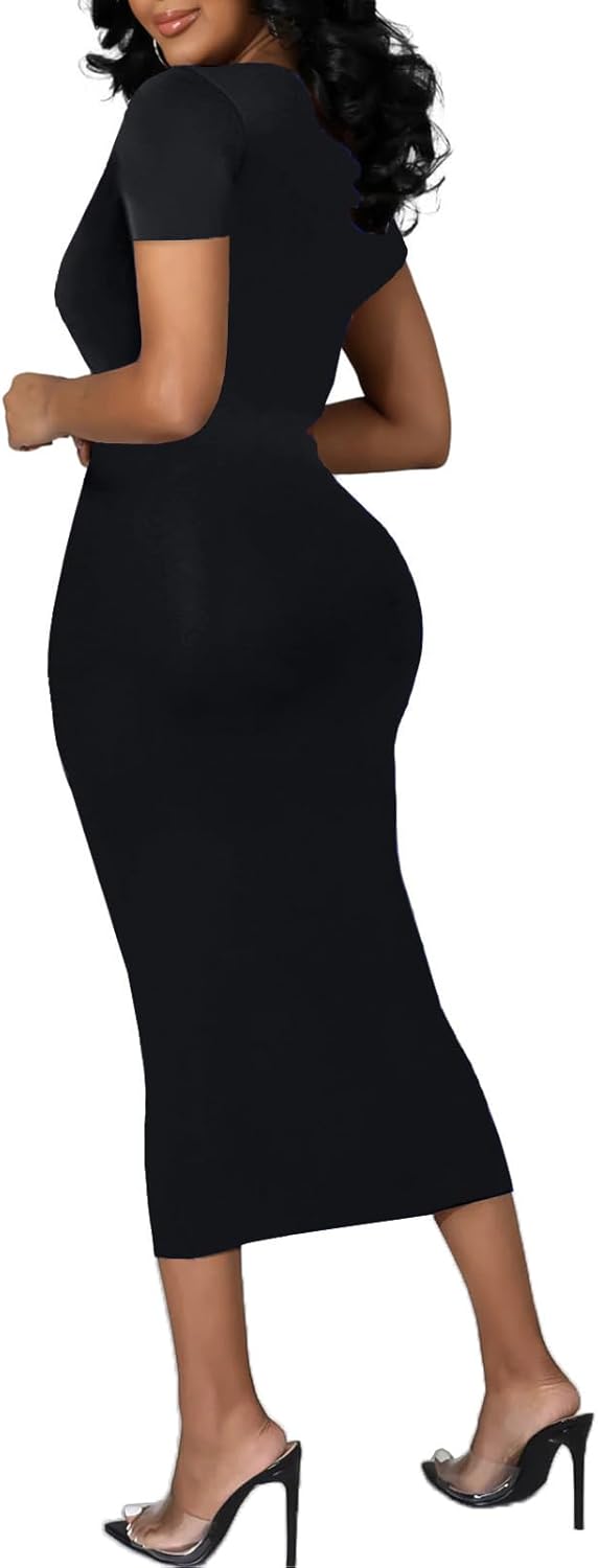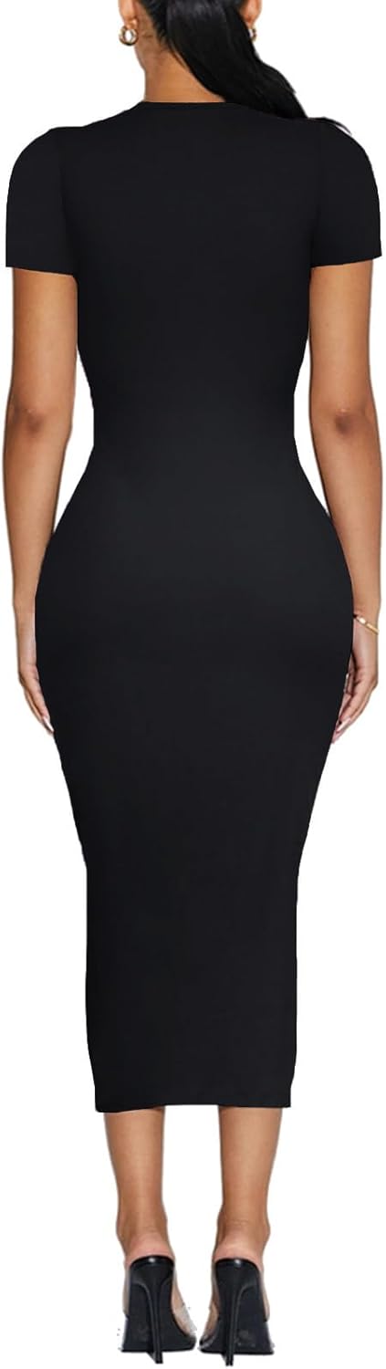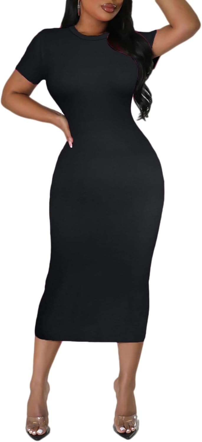 Summer Midi Bodycon Dress for Women – Short Sleeve Birthday Outfit Party Casual Long Tight Tshirt Dresses