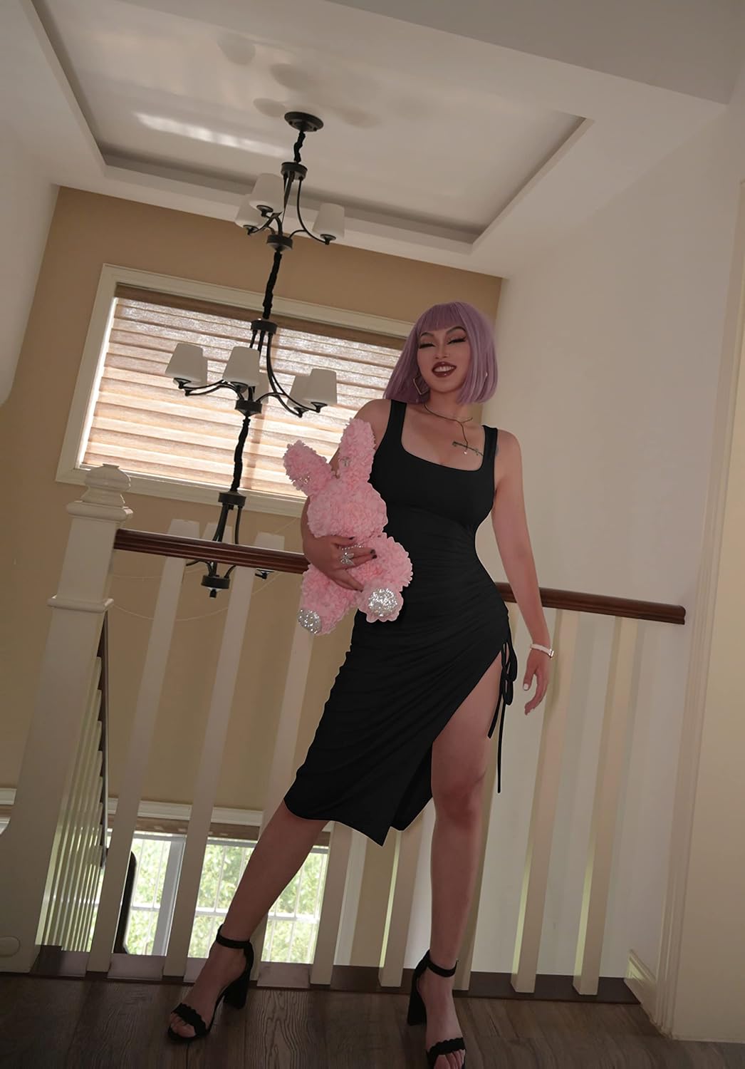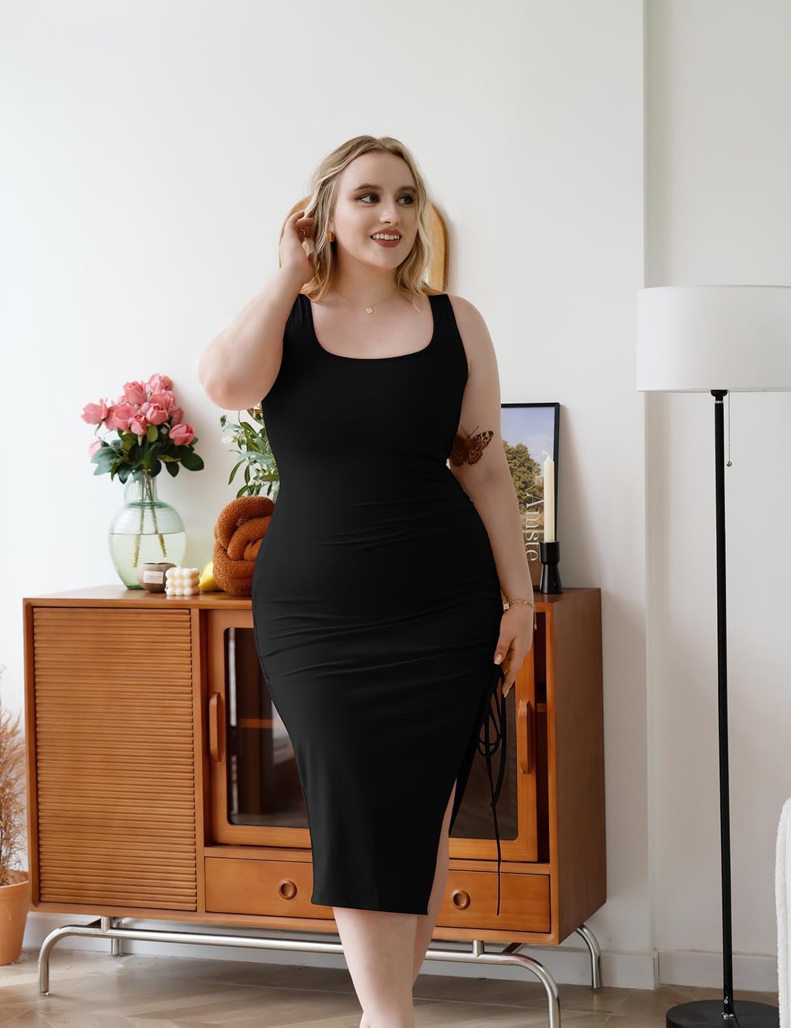 Style: Trendy, Sexy, Cute, Classy, Party, Date Pattern Type: Solid Color and Multicolor Neckline: Scoop Neck Details: Sleeveless Tank Midi Dress, Drawstring Side Split Season: Spring, Summer, Fall Composition: 90% Polyester, 10% Spandex Size: S(US 4-6), M(US 8-10), L(US 12-14), XL(US 16-18)Occasions: Club/Night Out/Casual/Formal/Graduation/Birthday/Holiday/Dinner