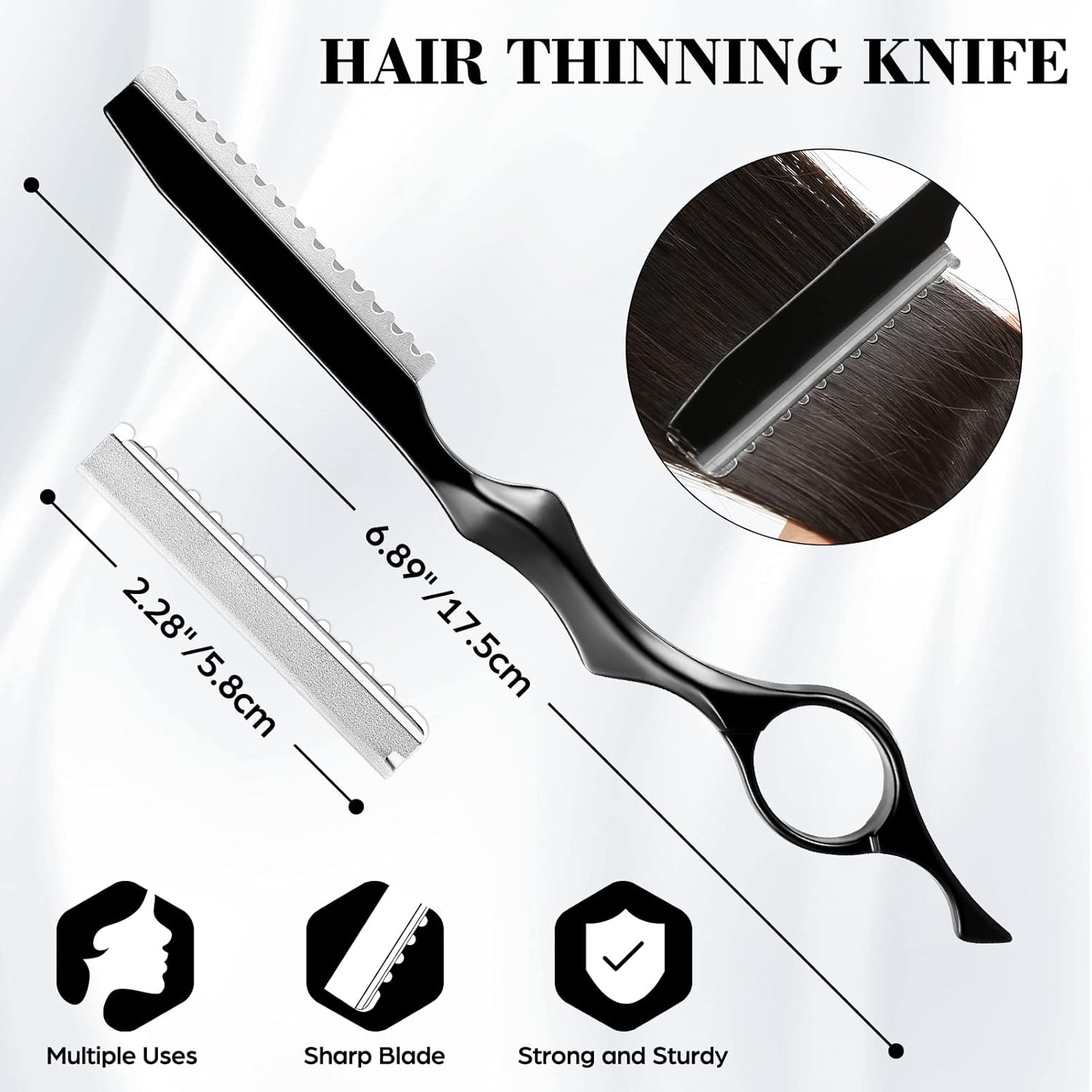 【Versatile Hair Scissors Set】: This set includes 2 straight scissors, 1 hair thinning scissors, 1 hair thinning knife, 1 hair comb, 1 hair clip, 1 leather bag, 1 cleaning cloth, and 1 adjustable screw, making it perfect for both professional salon use and home use.
