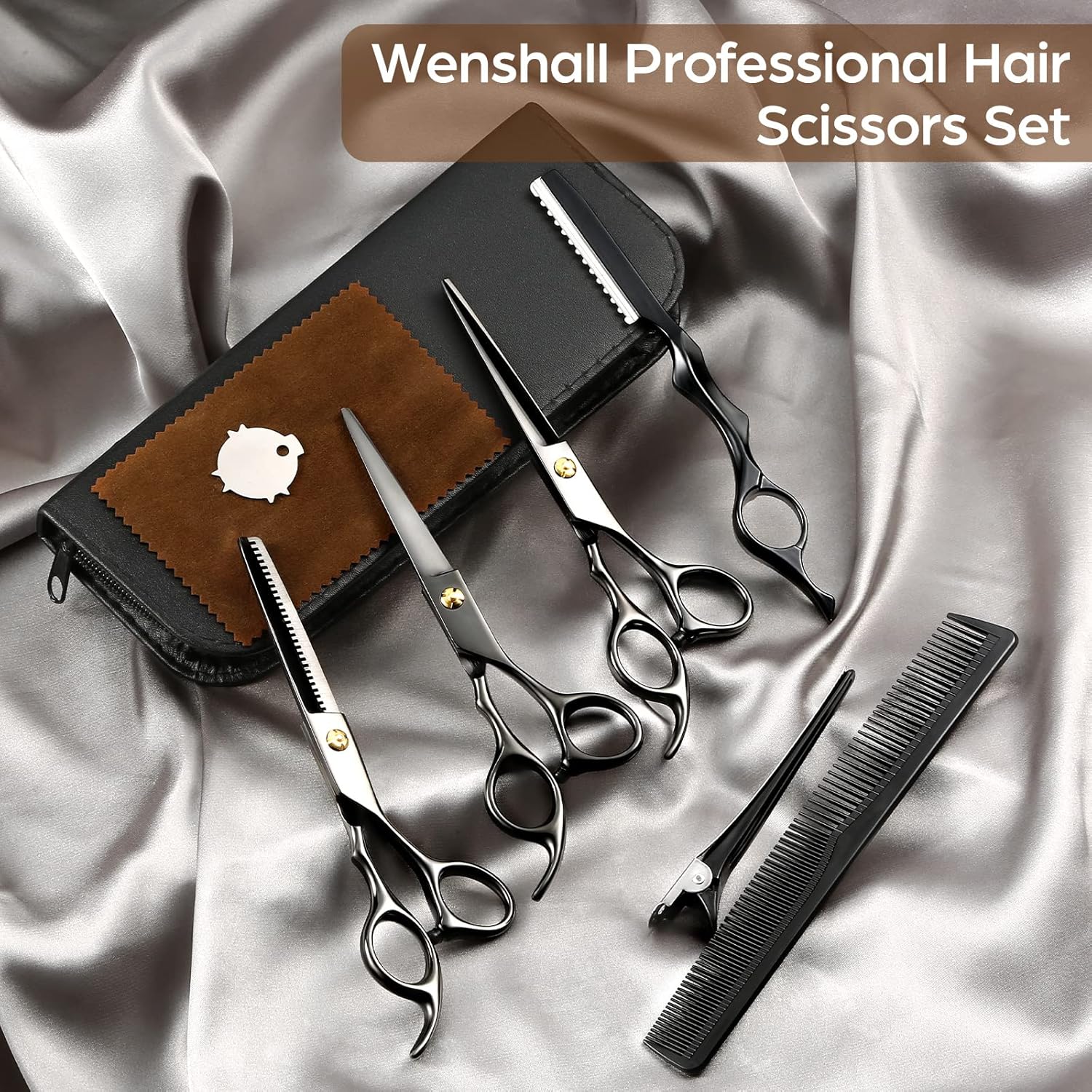 【Premium Quality Hair Scissors】: Made from high-quality titanium black coated 440C Japanese stainless steel, these Wenshall hair scissors are durable, comfortable to use, and perfect for cutting wet or dry hair.